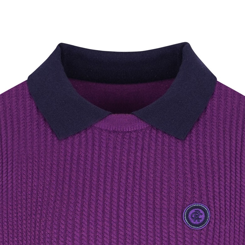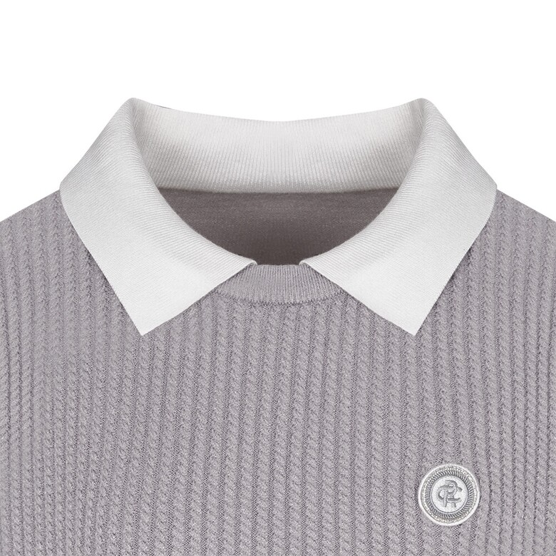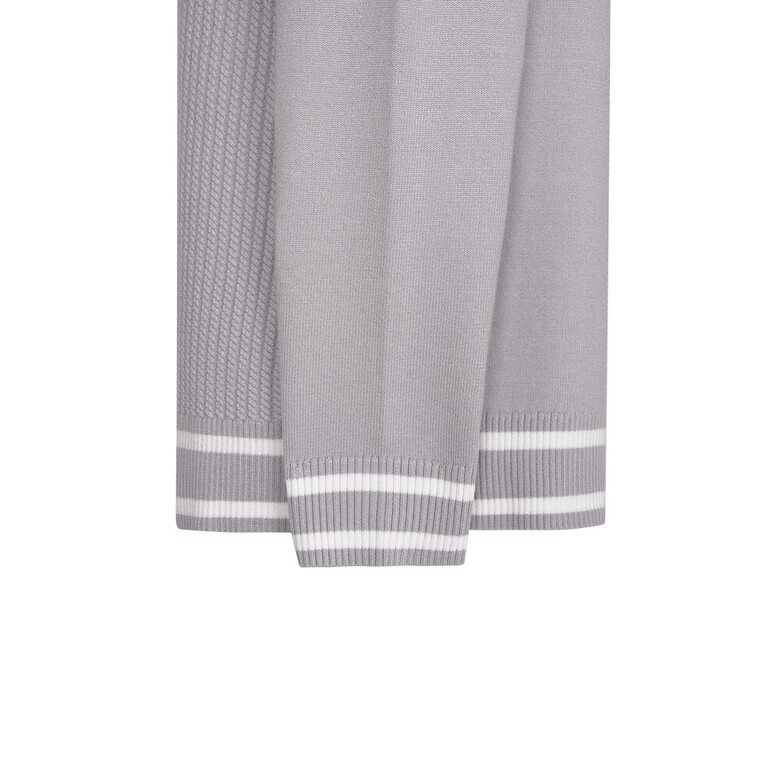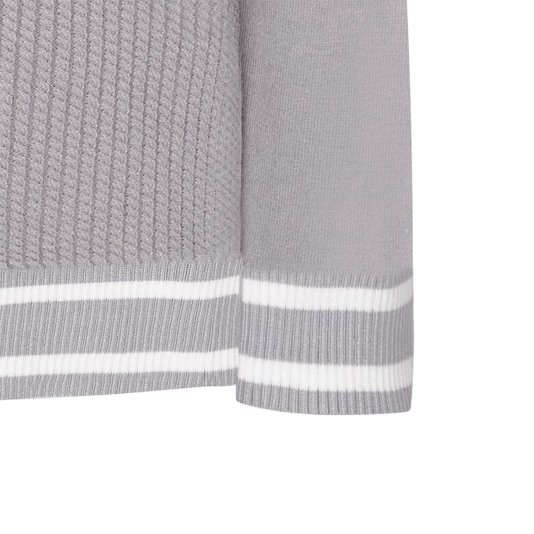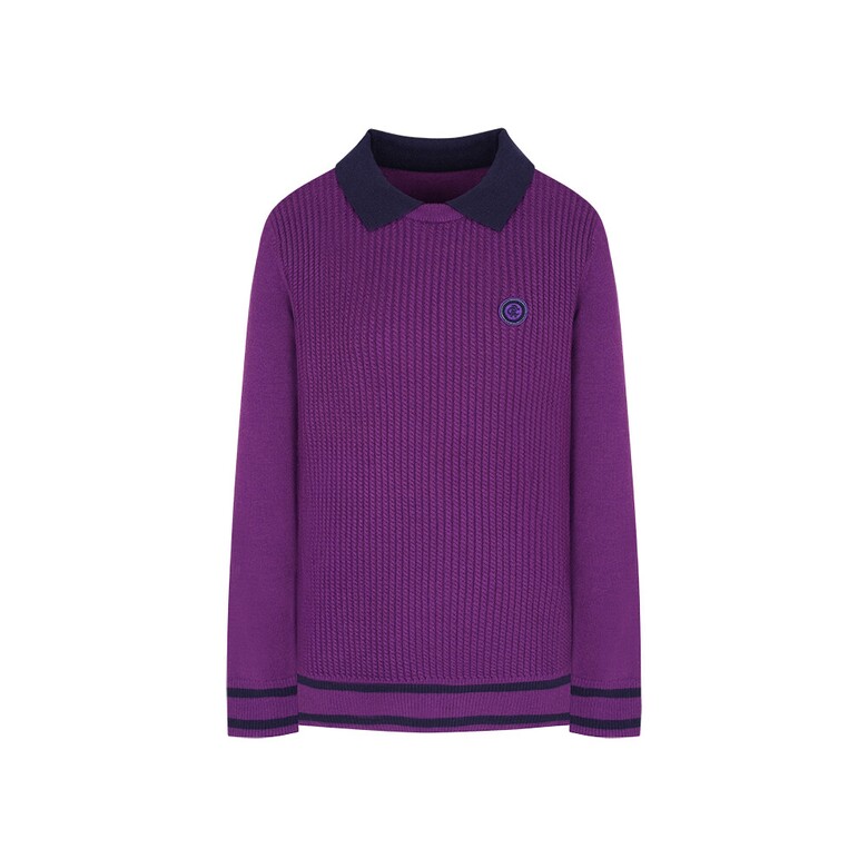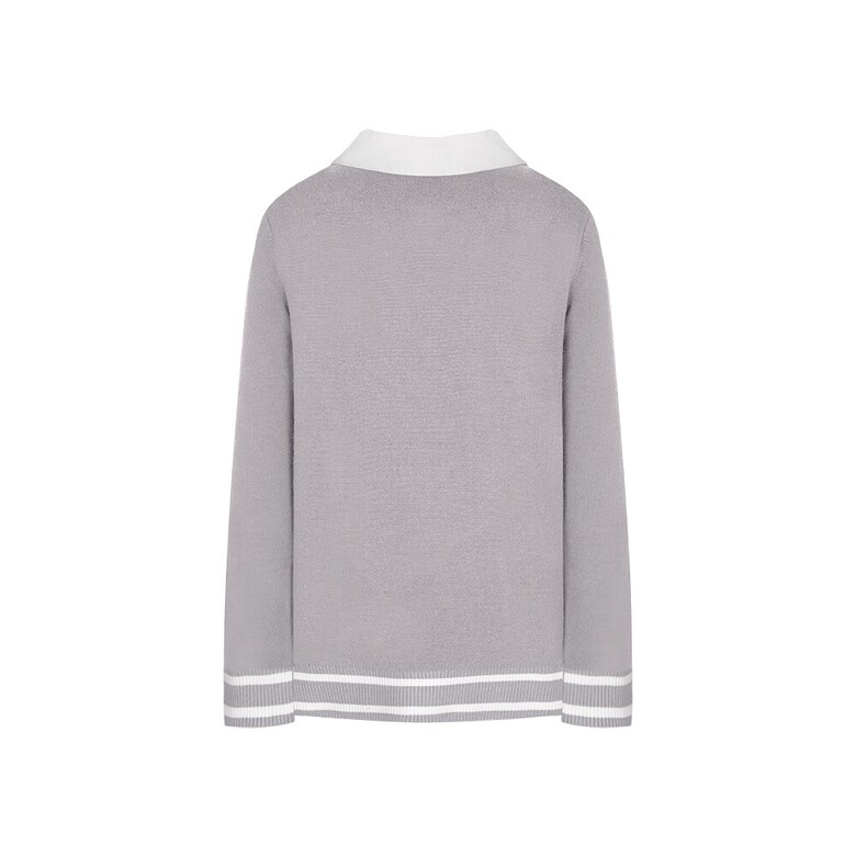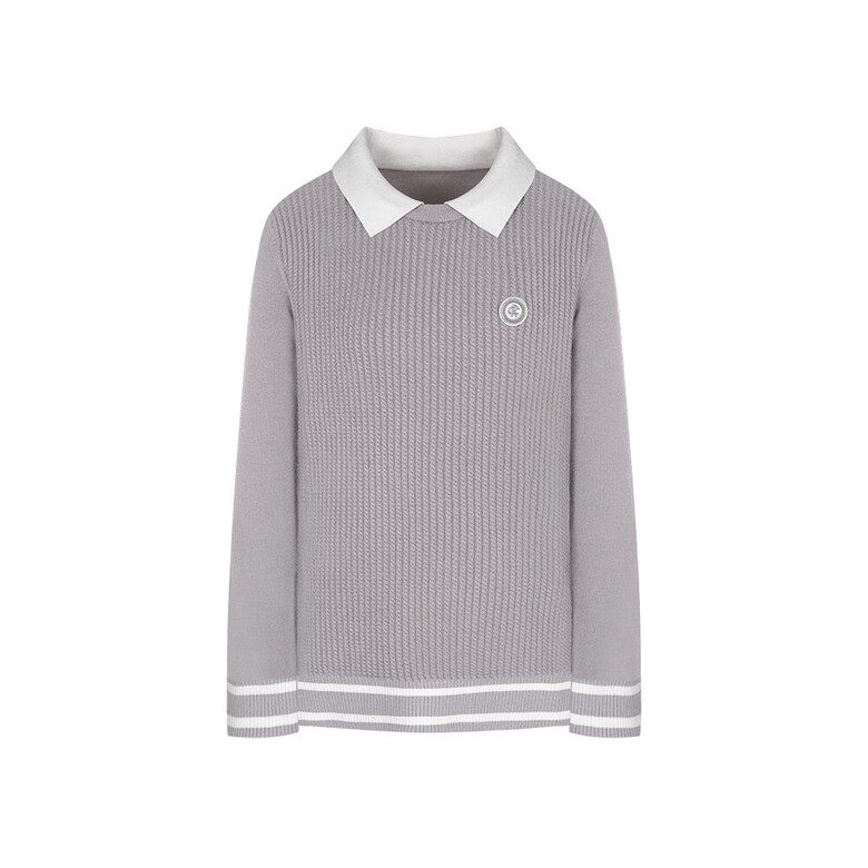 (G라인)R/N/PBT원사를 사용하였고 몸판 케이블조직으로 텐션감이 좋은 카라변형 스웨터