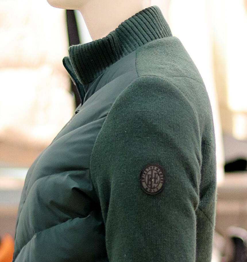 포근한 터치감의 니트 배색 믹스 다운 점퍼입니다