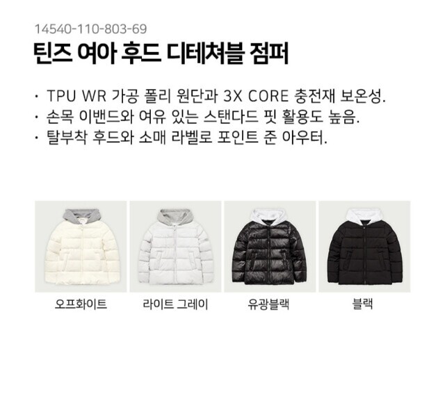 | 1. 제품 소재 (섬유의 조성 또는 혼용률을 백분율로 표시, 기능성인 경우 성적서 또는 허가서) | 상품상세참조 |