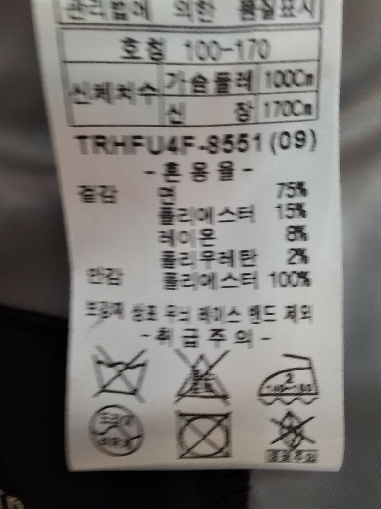 | 1. 제품 소재 (섬유의 조성 또는 혼용률을 백분율로 표시, 기능성인 경우 성적서 또는 허가서) | 코듀로이, 레이온 8%, 폴리우레탄 2% / 겉감:면 75%, 폴리에스테르 1 |