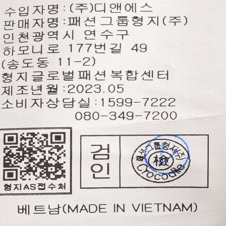 | 1. 제품 소재 (섬유의 조성 또는 혼용률을 백분율로 표시, 기능성인 경우 성적서 또는 허가서) | 상품상세참조 |