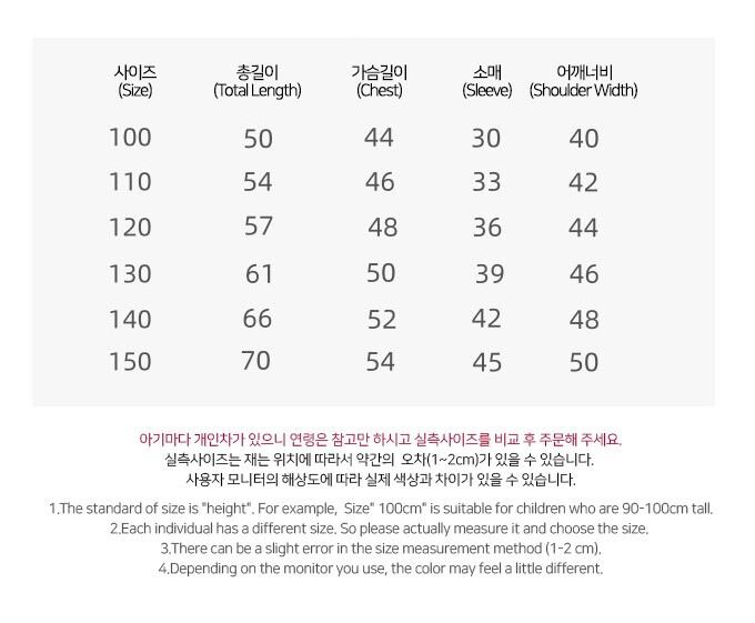 사이즈 : 100,110,120,130,140,150