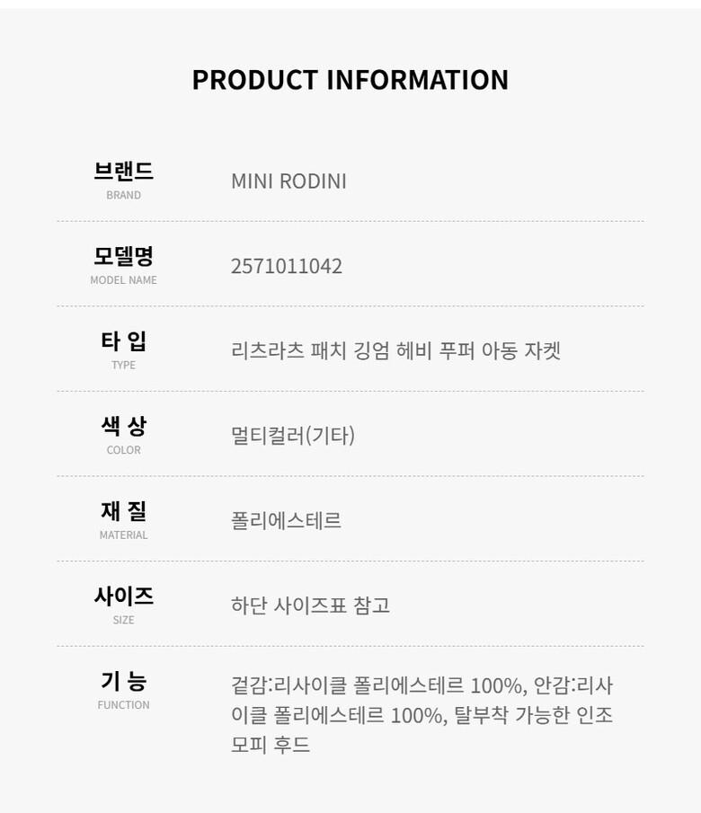 • 처음 배송된 상품상태와 다를 경우(세탁/착용 후 외출하신 경우) 반품이 불가합니다.