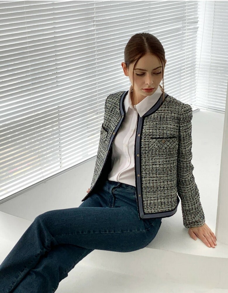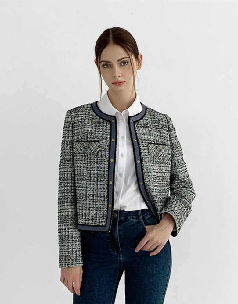 (미센스) 니트 배색 트위드 재킷 KM02ZMB5XJKM102Z
