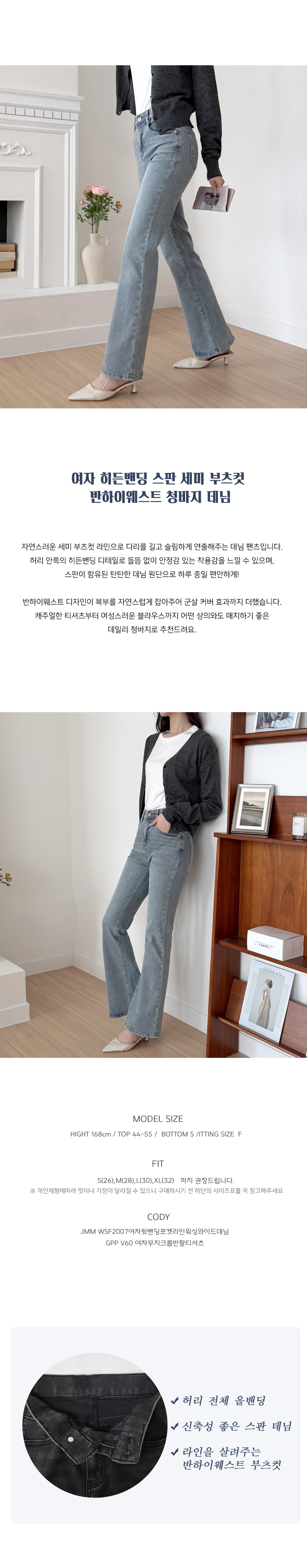 여자 히든밴딩 스판 세미 부츠컷 반하이웨스트 청바지 데님