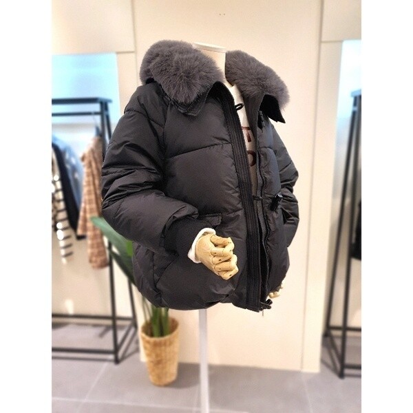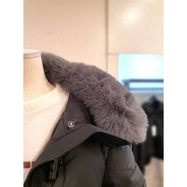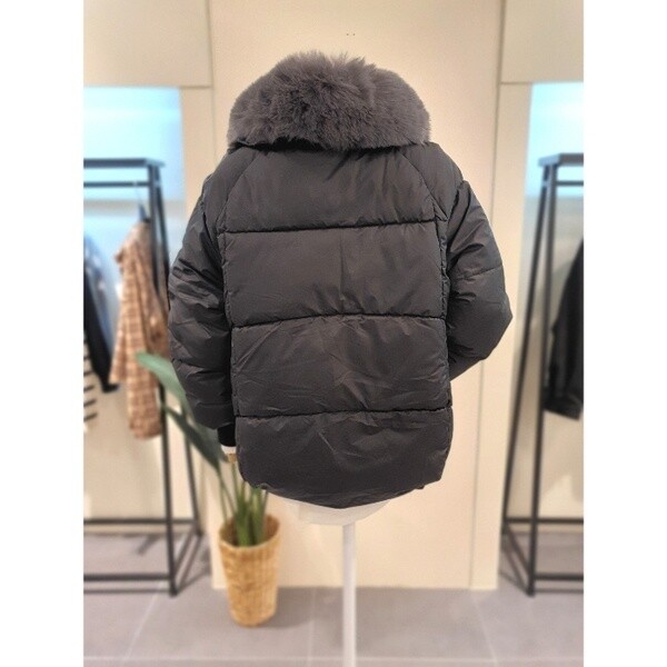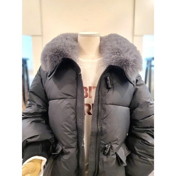 탈부착이 가능한 에코퍼 카라 패딩점퍼입니다. 부드러운 퍼로 까스럽지 않습니다.