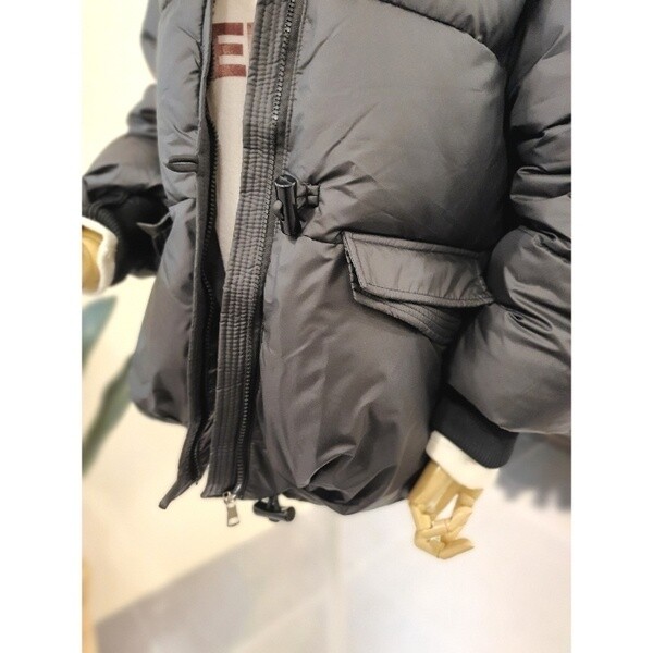 지퍼식이며 떡볶이 단추로 귀여움이 더해졌습니다. 주머니 안감 있습니다. 내장재 폴리(솜)입니다.