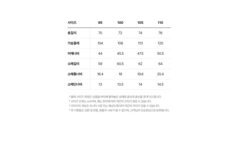 | 1. 제품 소재 (섬유의 조성 또는 혼용률을 백분율로 표시, 기능성인 경우 성적서 또는 허가서) | 상품상세참조 |