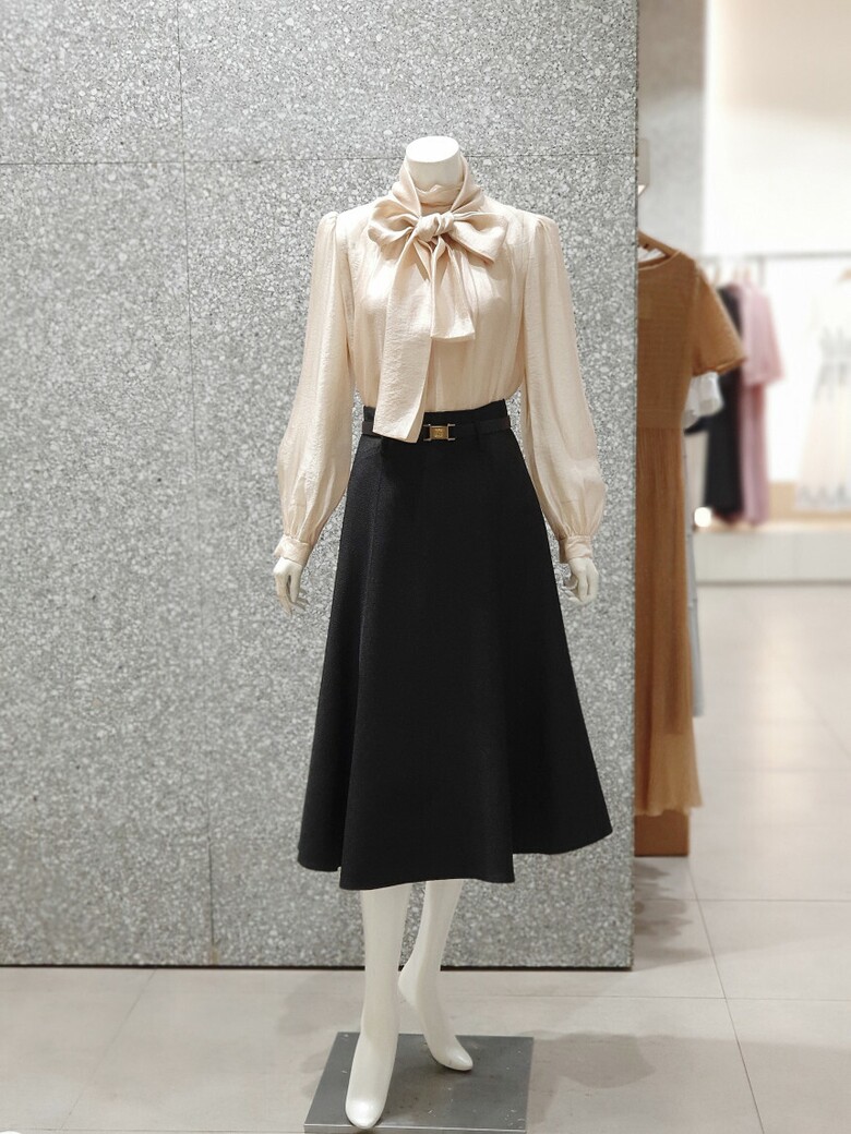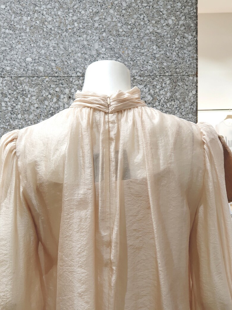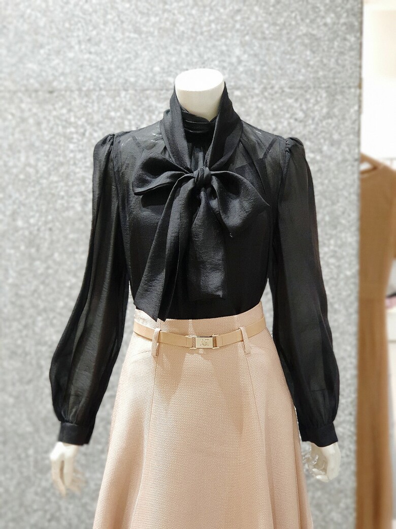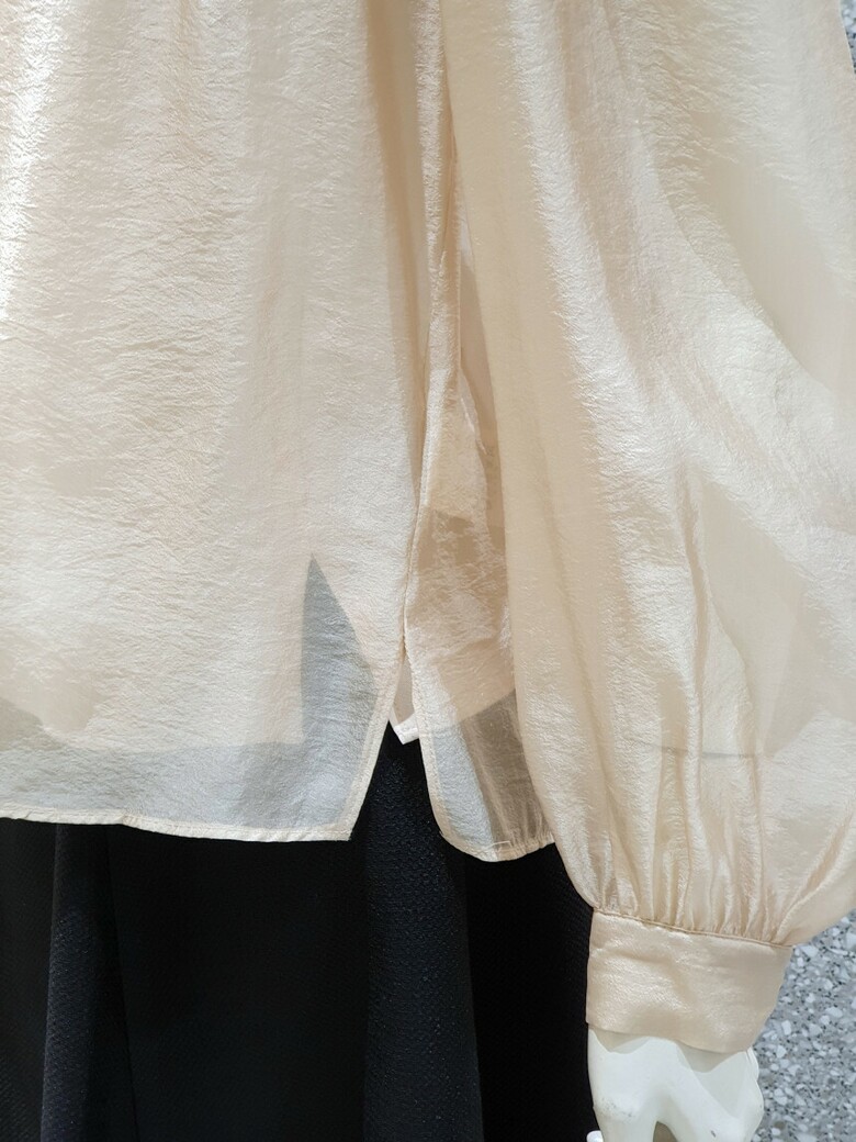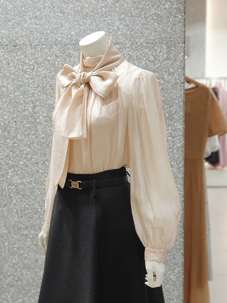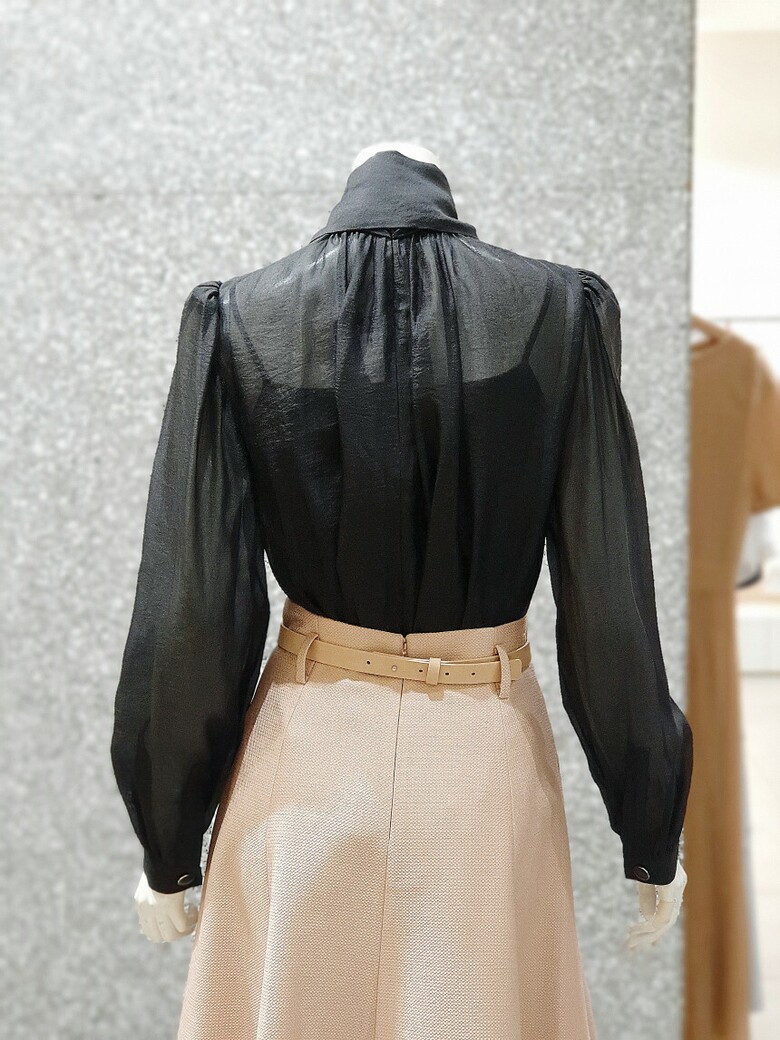 시스루 퍼프 타이 셔링넥 블라우스+이너 세트 JR8-A0-BL663