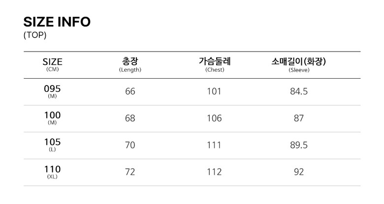 | 3. 치수 | 095, 100, 105, 110 |