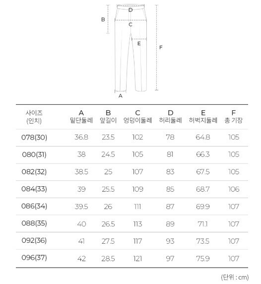 사이즈 : 78(30),80(31),82(32),84(33),86(34),88(35),92(36),96(38)