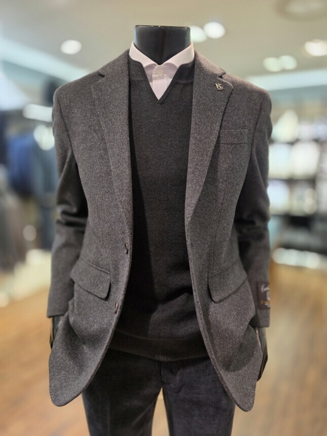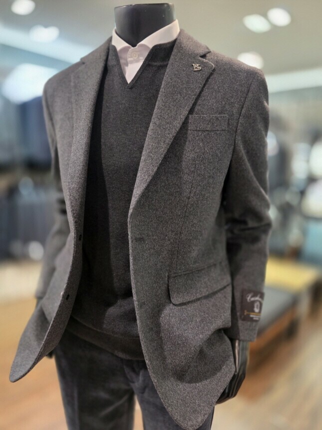 [바쏘옴므] 25년F/W 그레이 캐시미어 레귤러핏 캐쥬얼 재킷