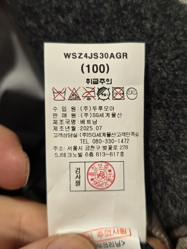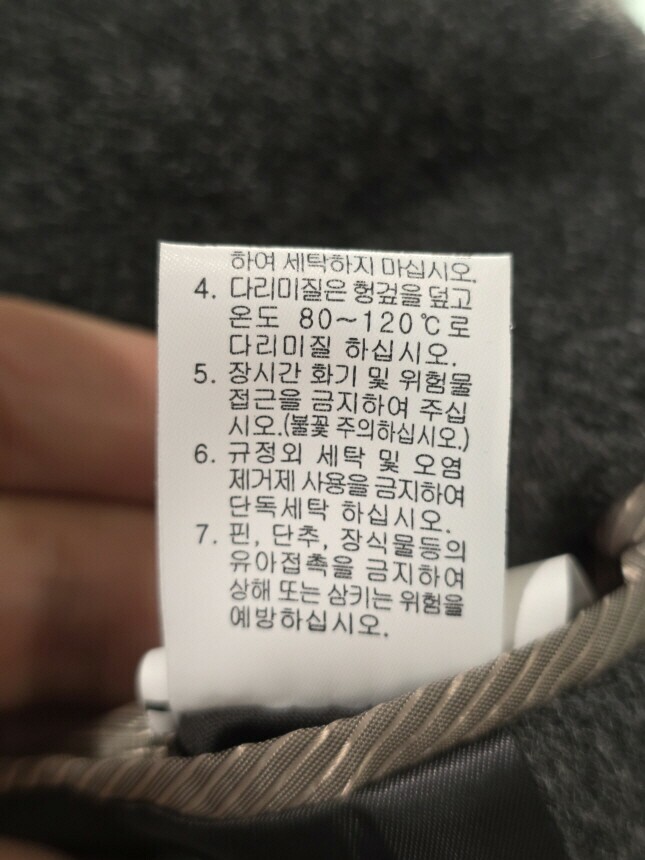 | 6. 세탁방법 및 취급시 주의사항 | 드라이크리닝 |