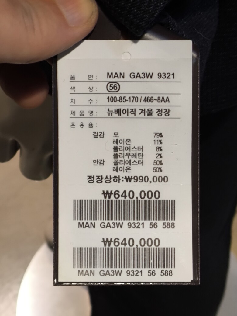 인디안 브루노바피 뉴베이직 겨울 정장 MANGA3W9321