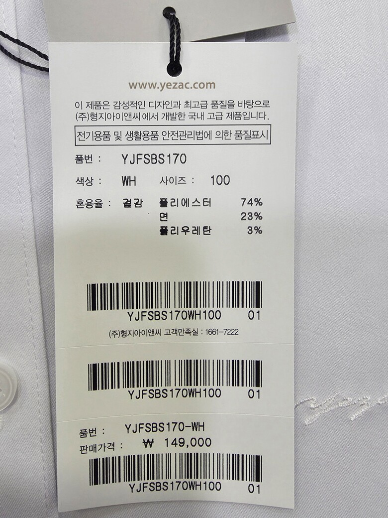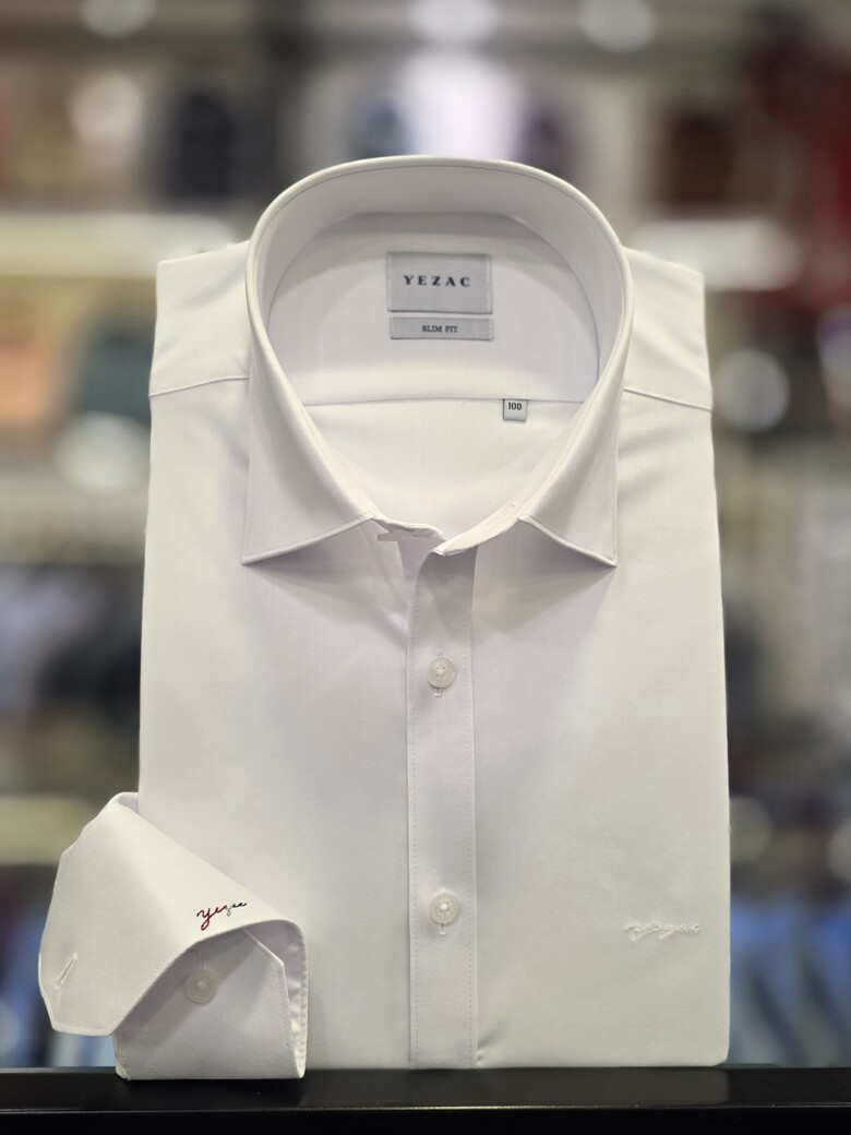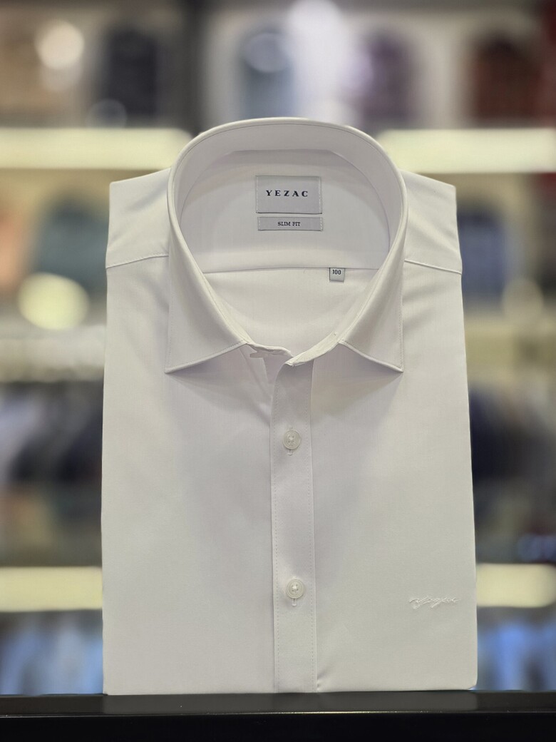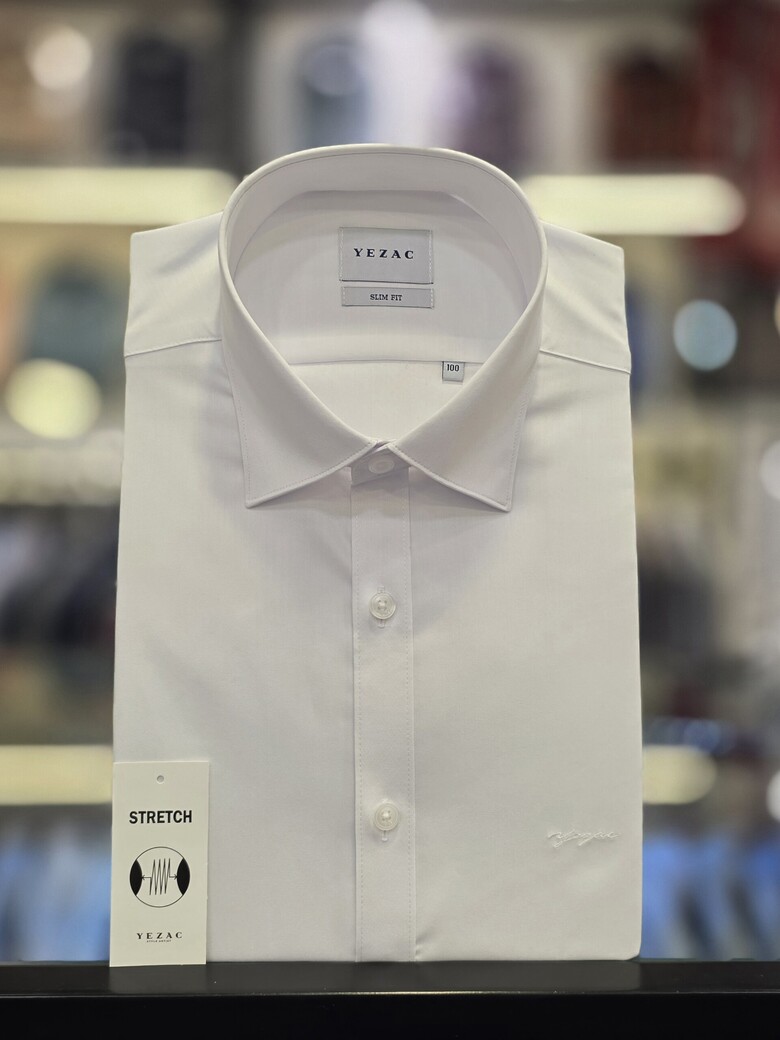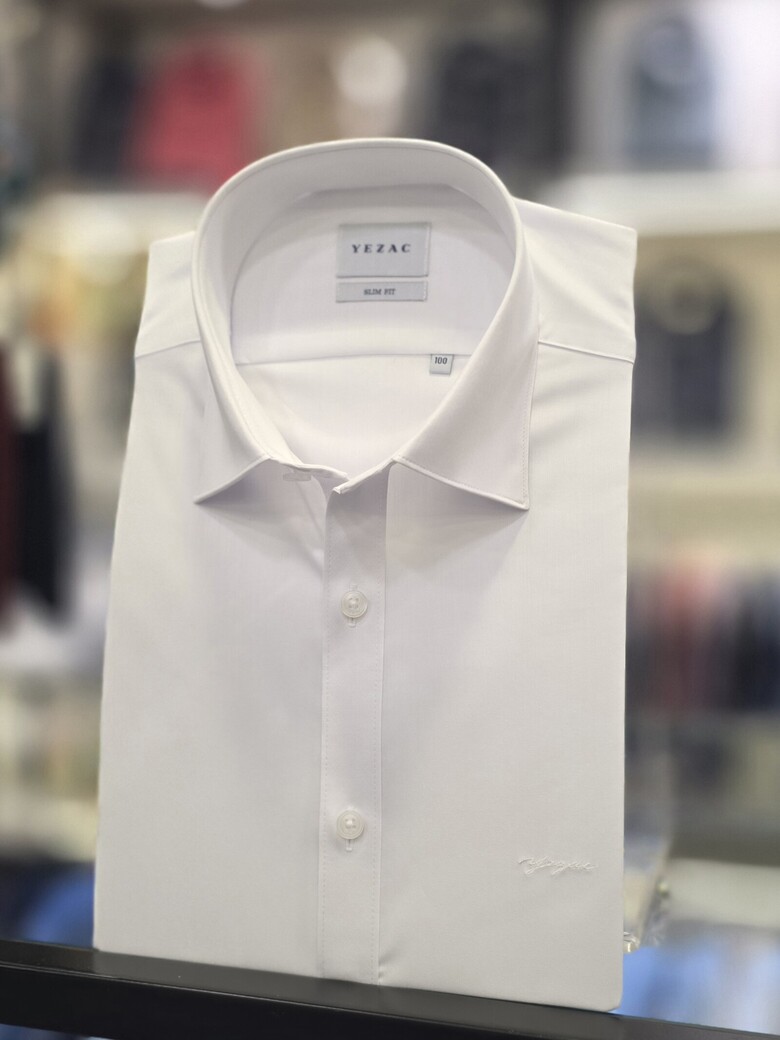 [예작셔츠] 화이트 면TC 스판 소매 포인트 슬림핏셔츠 YJFSBS170WH