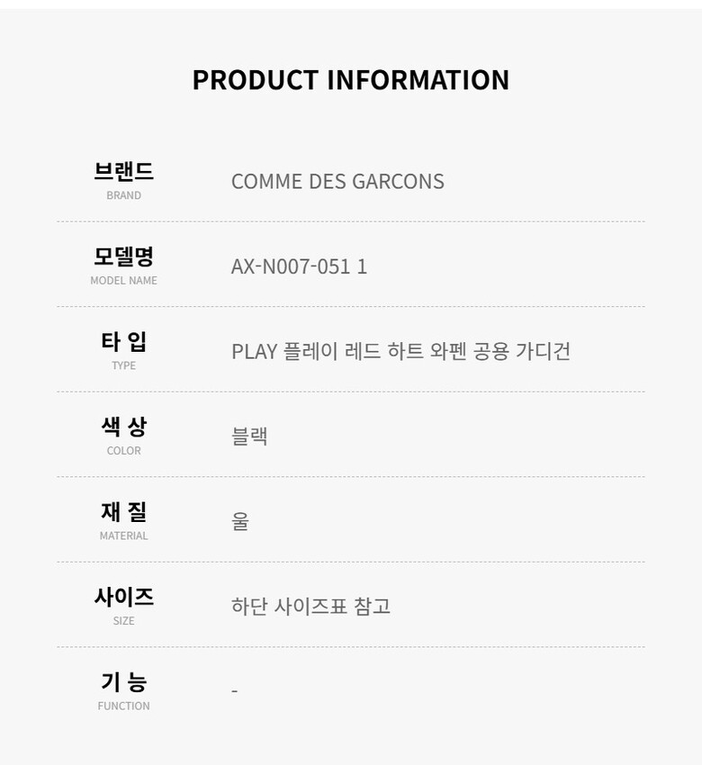 | 4. 제조사 | 꼼데가르송/(주)언커먼레이블-병행수입 |