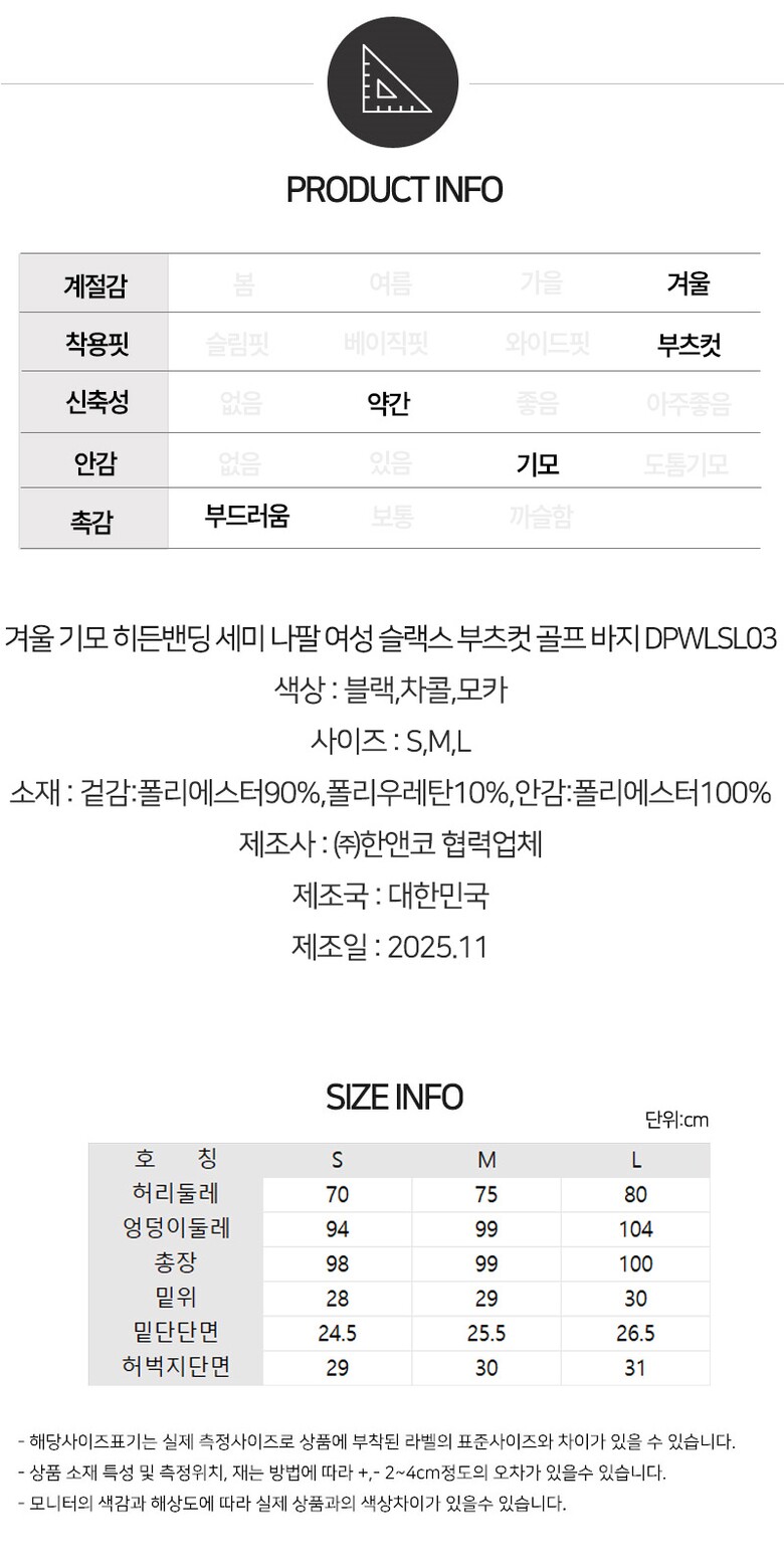 [김영주골프] 겨울 기모 히든밴딩 세미 나팔 여성 슬랙스 부츠컷 골프 바지 DPWLSL03