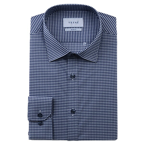 YJFSIS351_신축성 있는 스판 체크 슬림핏 긴소매
