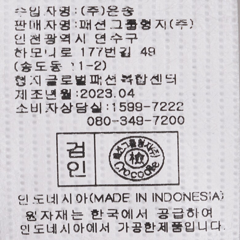 | 1. 제품 소재 (섬유의 조성 또는 혼용률을 백분율로 표시, 기능성인 경우 성적서 또는 허가서) | 상품상세참조 |
