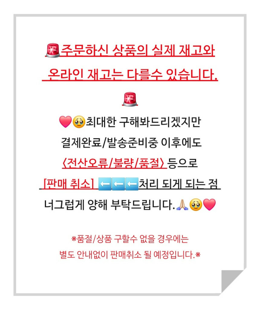 오프라인 재고 품절 시 수급에 시간이 걸릴 수 있습니다.