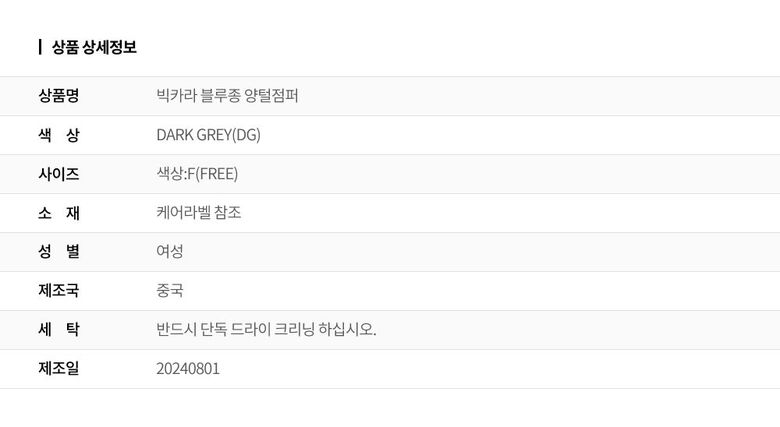 | 6. 세탁방법 및 취급시 주의사항 | 상세페이지 참조 |