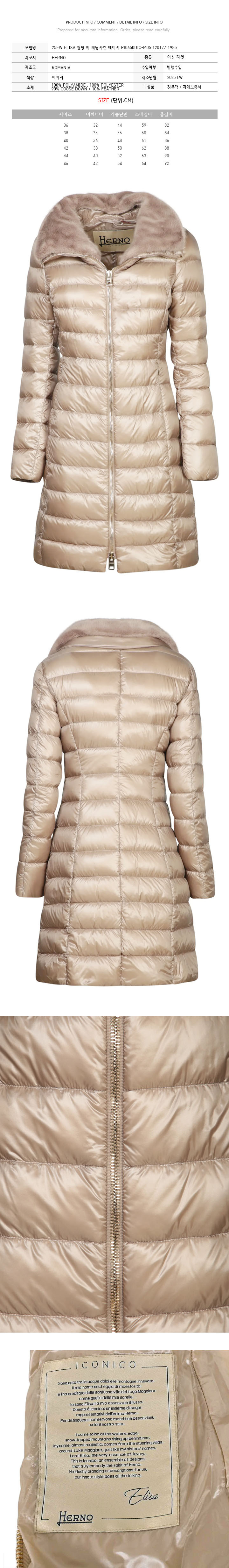 에르노 25FW ELISA 퀄팅 퍼 패딩자켓 베이지 PI0650DIC-M05 12017Z 1985