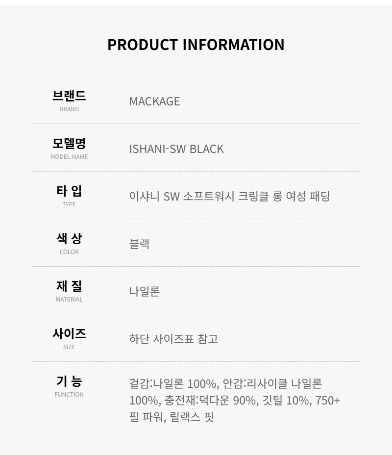맥케이지 ISHANI-SW BLACK 이샤니 SW 소프트워시 크링클 롱 여성 패딩