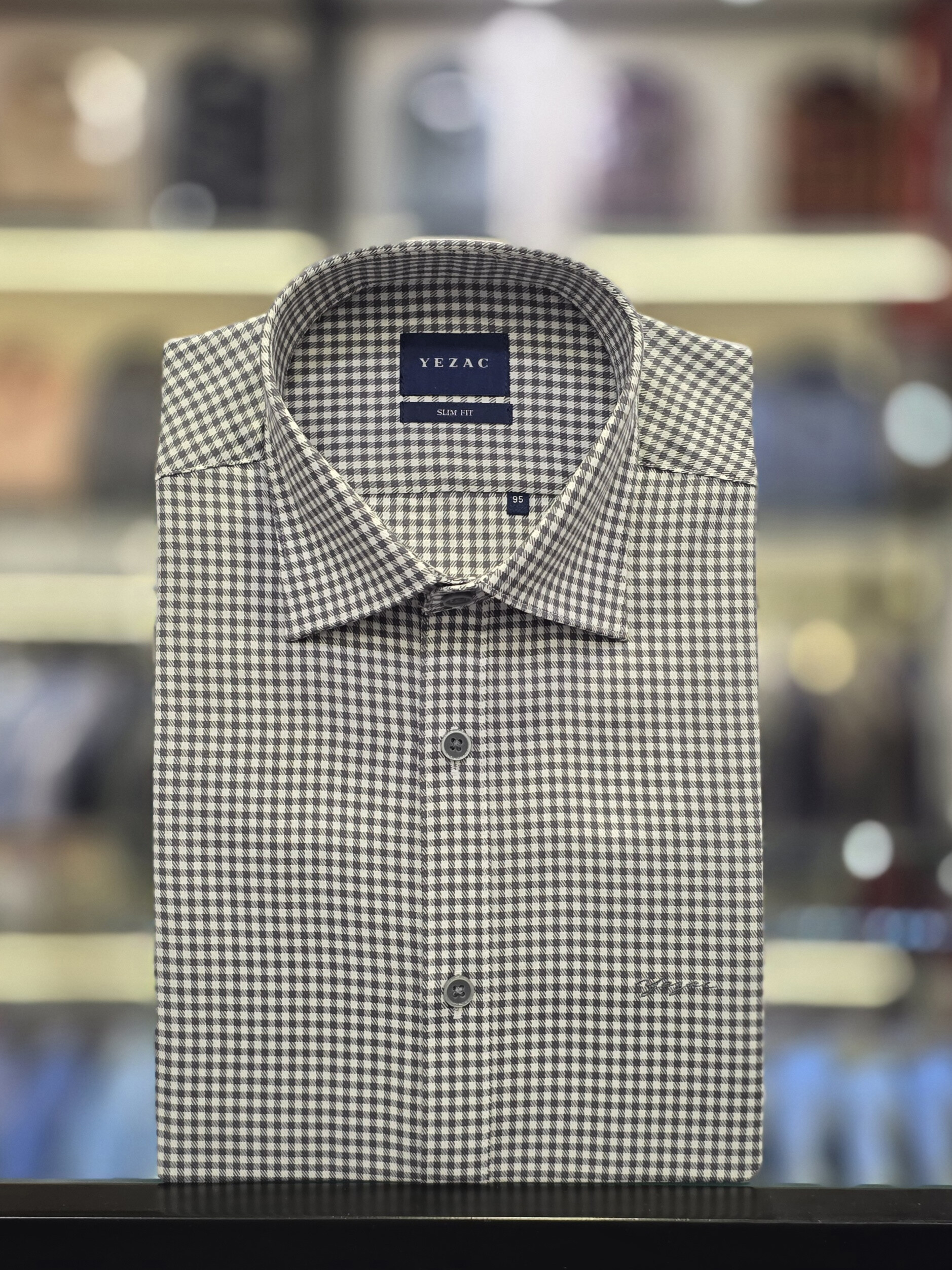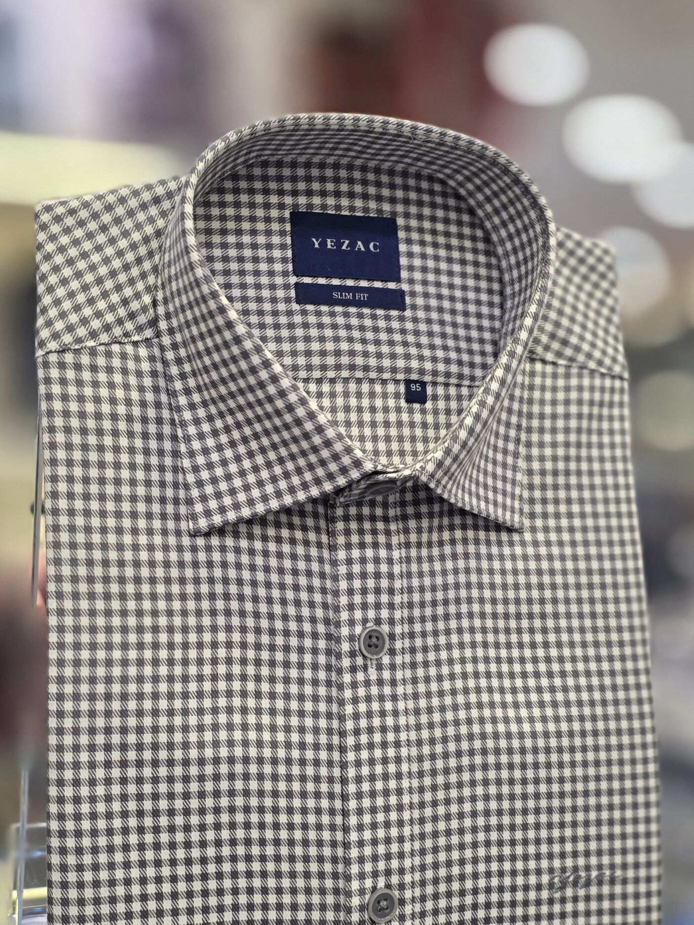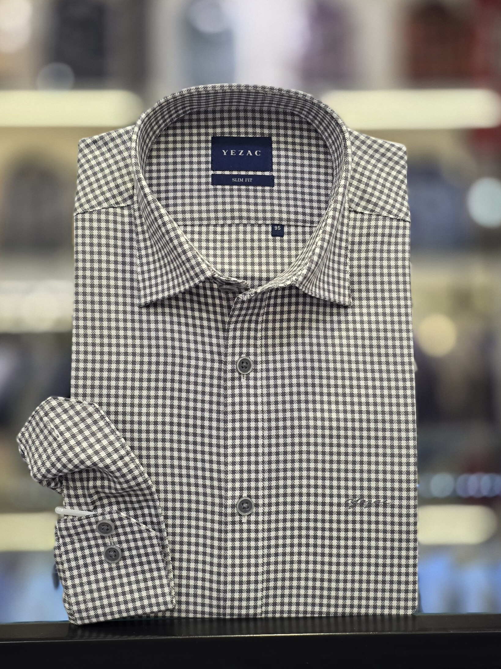 [예작셔츠] 면혼방 잔체크 슬림핏셔츠 YJEFBS163GY