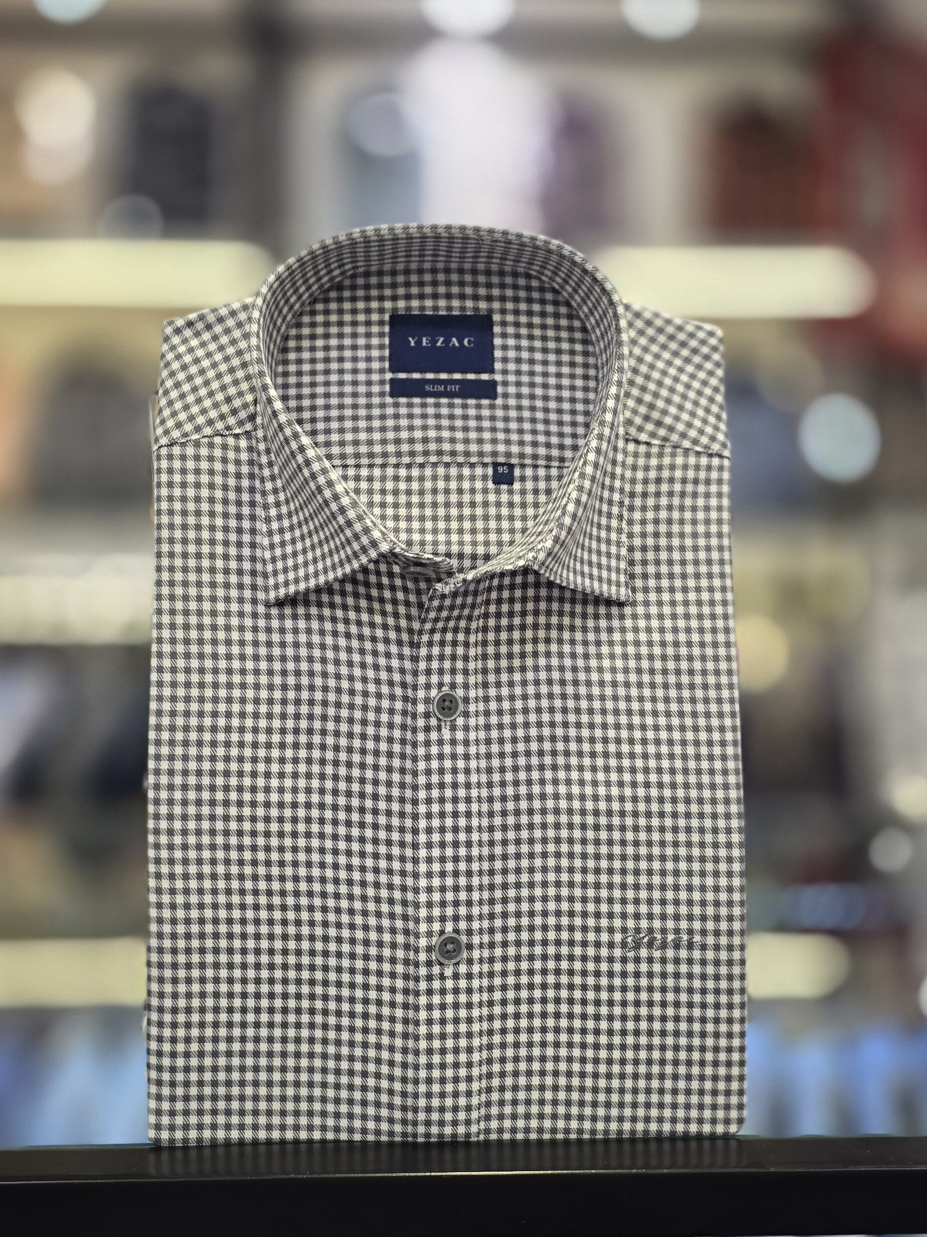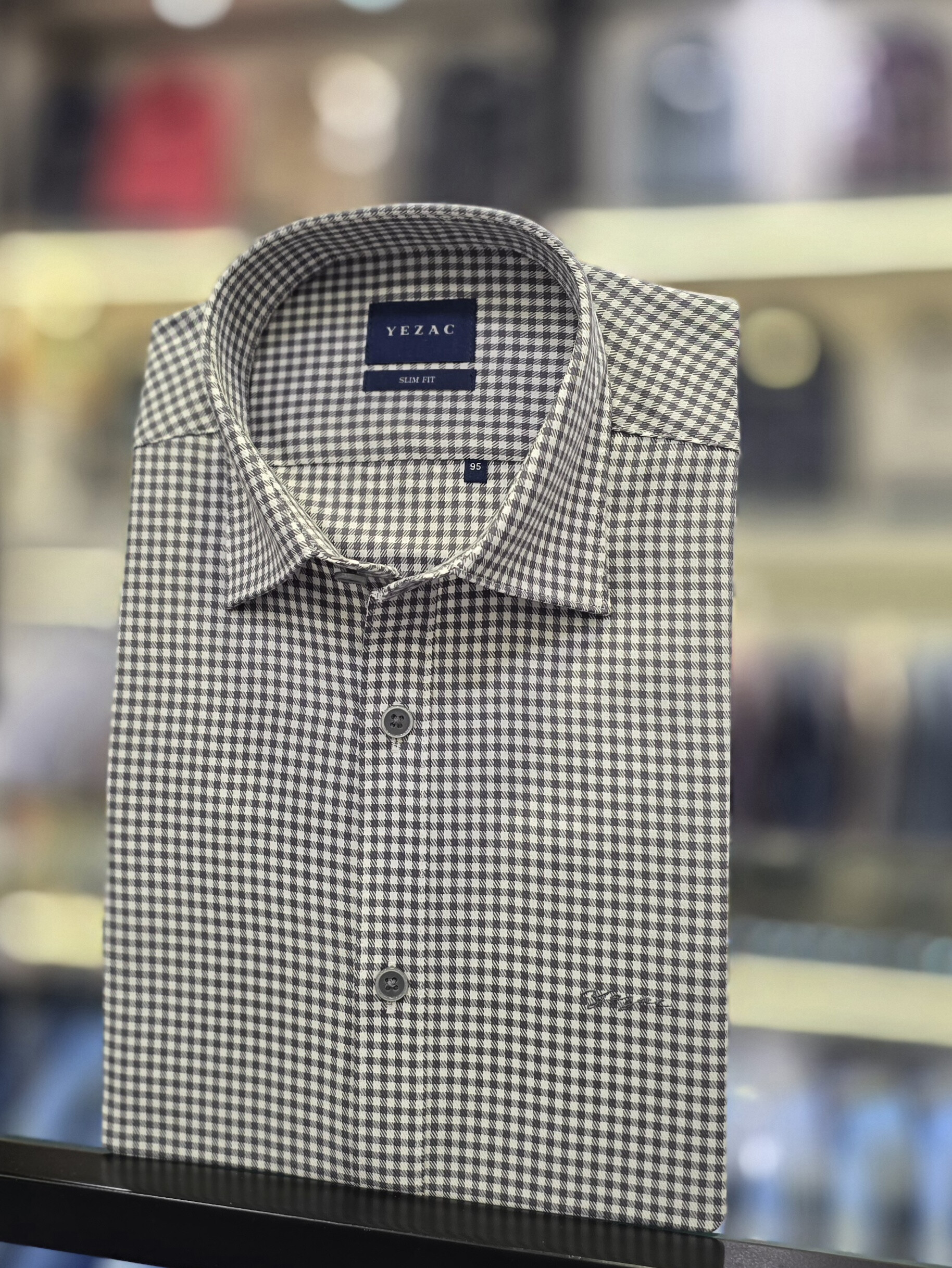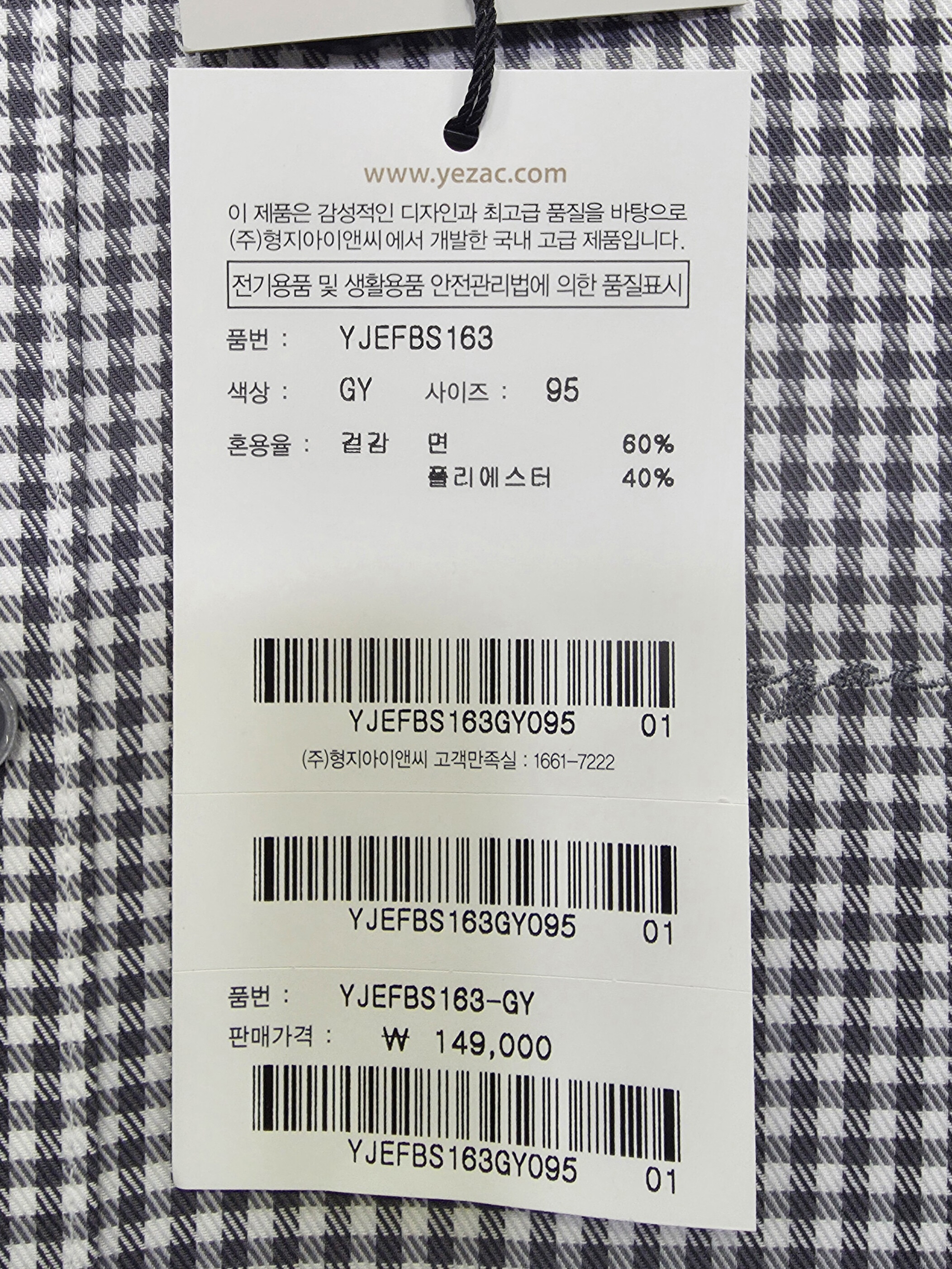 [예작셔츠] 면혼방 잔체크 슬림핏셔츠 YJEFBS163GY