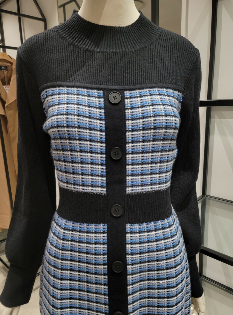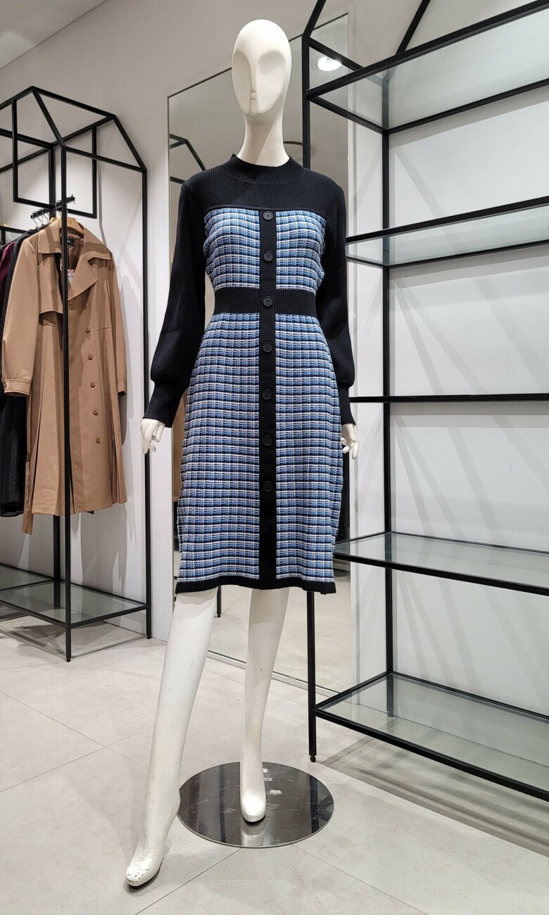 SI체크 퍼프소매 슬림 니트 원피스SJOCX2952