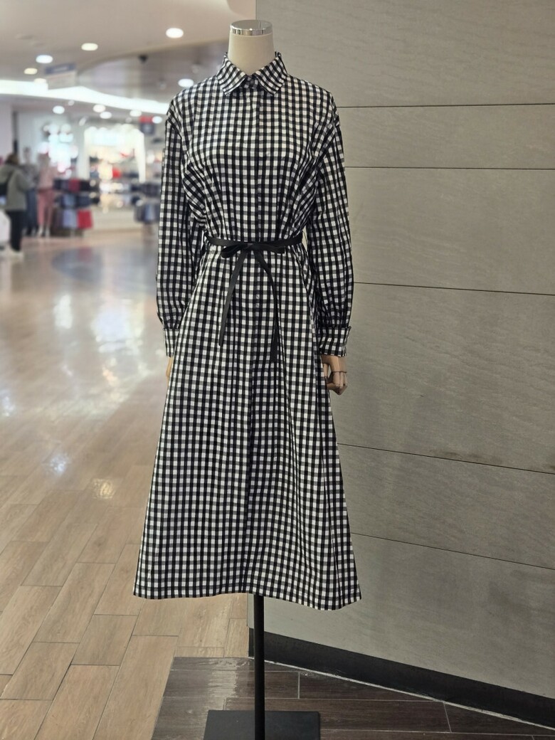 [발렌시아]셔츠형 벨티드체크롱원피스 252MO15