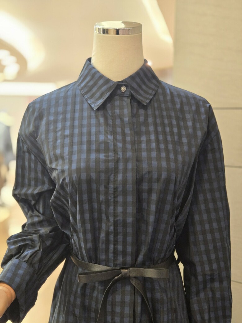 셔츠형 벨티드체크롱원피스 252MO15