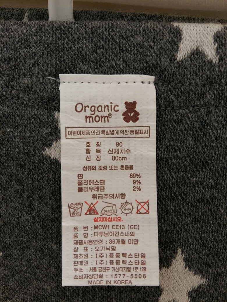 6. 세탁방법 및 취급시 주의사항 | 세탁주의사항 : 손세탁권장,세탁망세탁,무형광세제사용,삶지마세요 ,표백제사용금지취급주의사항 : 단독세탁권장 등 상세설명참조안전표시 : 작은부품의 경우 탈락되면 삼킬수 있음으로 주의 외 상품 상세설명참조 |