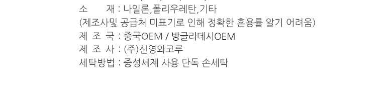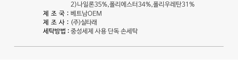 1. 제품 소재 (섬유의 조성 또는 혼용률을 백분율로 표시, 기능성인 경우 성적서 또는 허가서) | 상세 페이지 참조 |