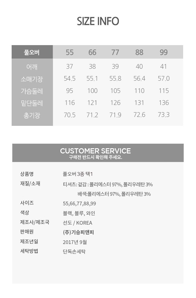 | 1. 제품 소재 (섬유의 조성 또는 혼용률을 백분율로 표시, 기능성인 경우 성적서 또는 허가서) | 상세페이지 참조 |