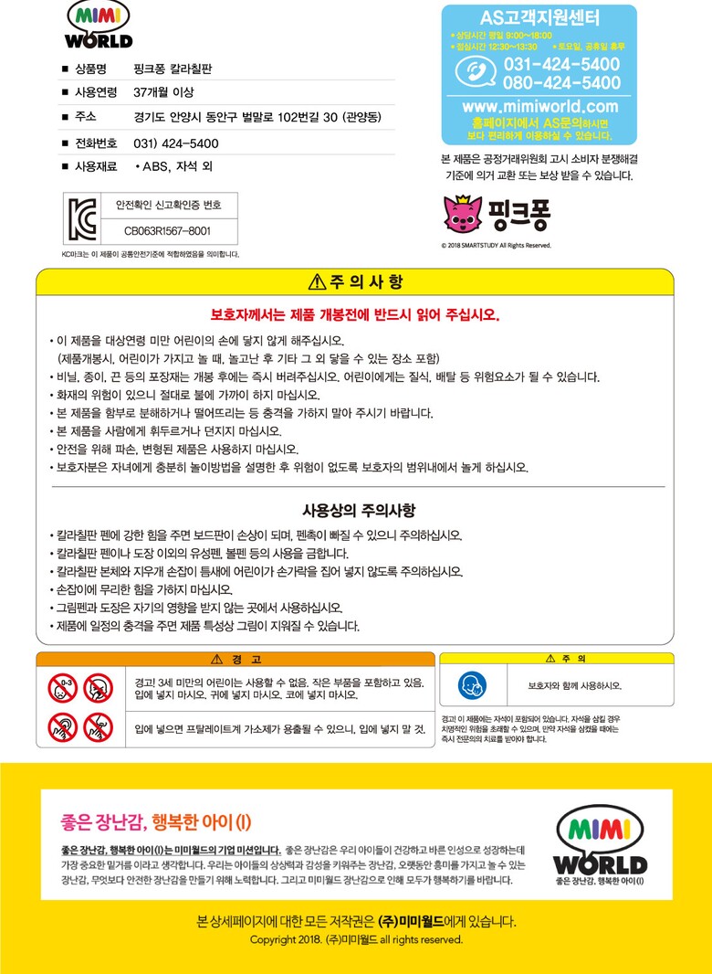 상품불량에 의한 반품, A/S, 품질보증 및 피해보상 등에 관한 사항은 소비자 분쟁해결기준(공정거래위원회 고시) 구매자가 미성년자인 경우에는 상품 구입시 법정대리인이 동의하지 아니하면 미성년자 본인 또는 법정대리인이 구매취소 할 수 있습니다. |