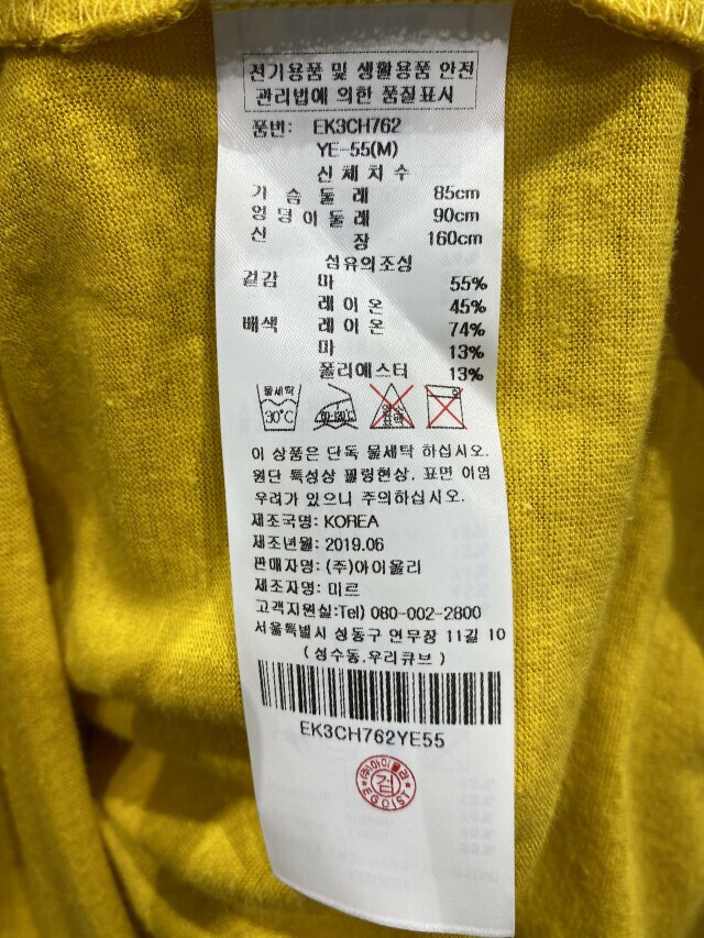 | 1. 제품 소재 (섬유의 조성 또는 혼용률을 백분율로 표시, 기능성인 경우 성적서 또는 허가서) | 겉감:레이온 / 배색:레이온 74%, 폴리에스테르 13% |