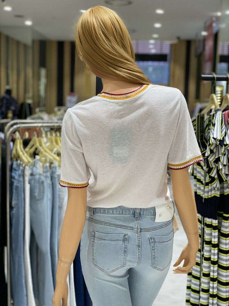 니트 배색 캐주얼 티셔츠 EK3CH762