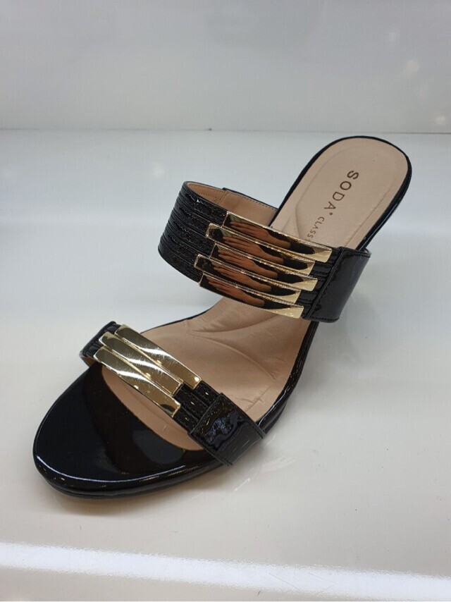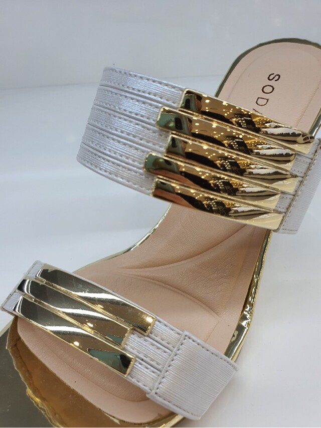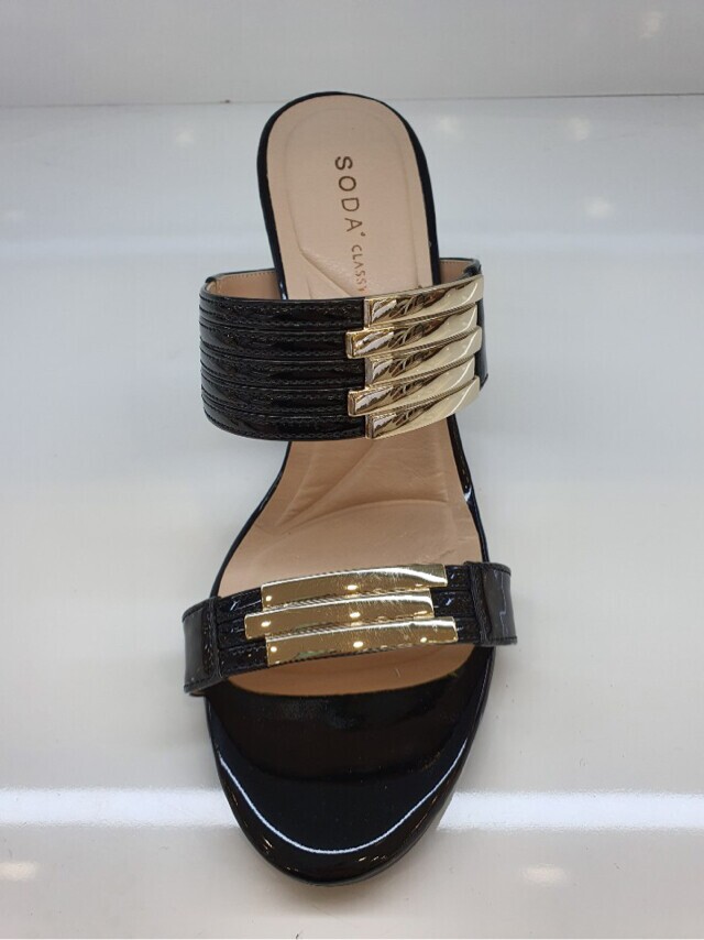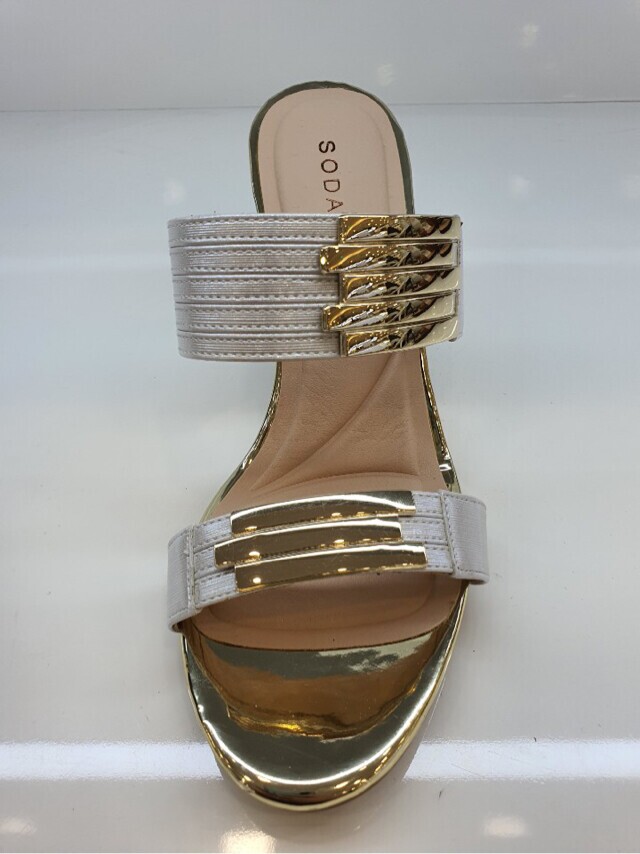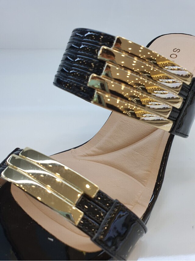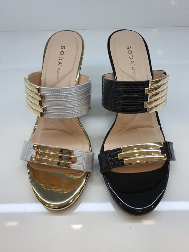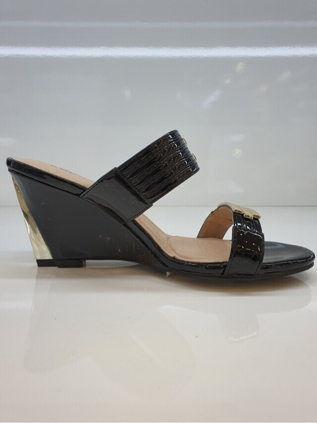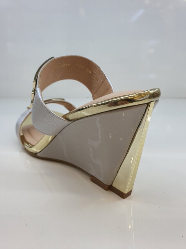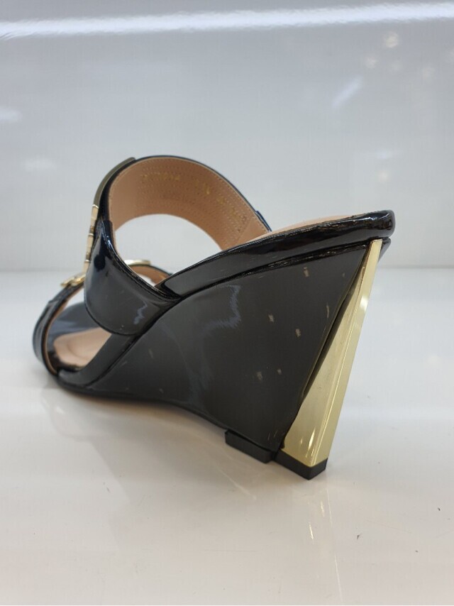 고급스러운 장식 패턴과 시원한 크링크 소재로 깔끔하면서 고급스러운 느낌을 주는 웨지힐 뮬 샌들입니다 웨지힐이라 안정감있고 뒤 굽 라인에도 포인트가 들어가있어 뒷모습도 세련된 디자인입니다 사이즈는 정사이즈고 높이는 8cm입니다