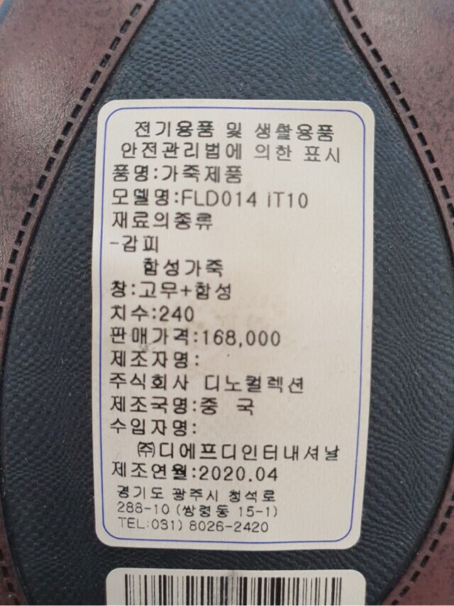 | 1. 제품 소재 (운동화인 경우에는 겉감, 안감을 구분하여 표시) | 코팅가죽 |