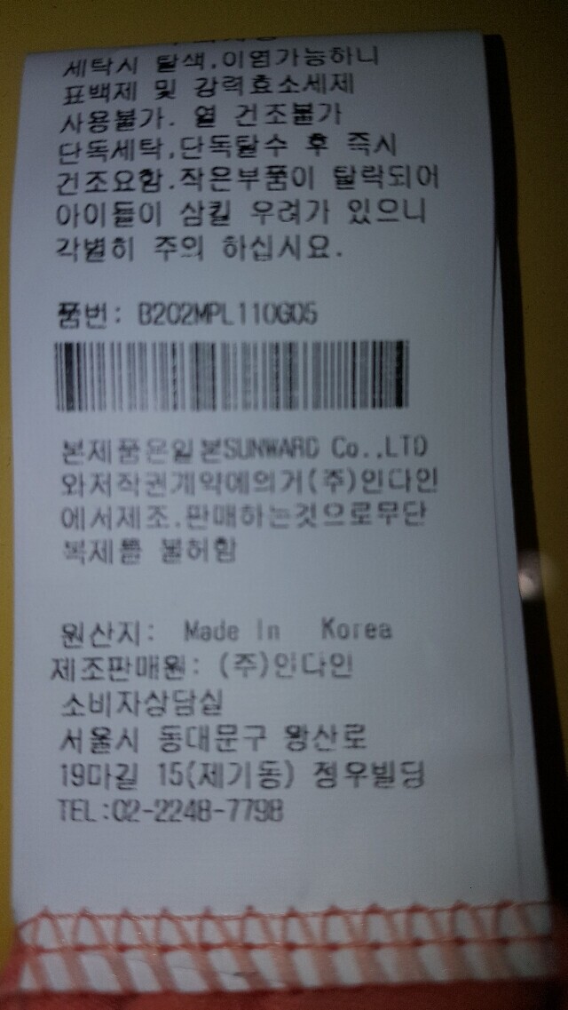 • 처음 배송된 상품상태와 다를 경우(세탁/착용 후 외출하신 경우) 반품이 불가합니다.