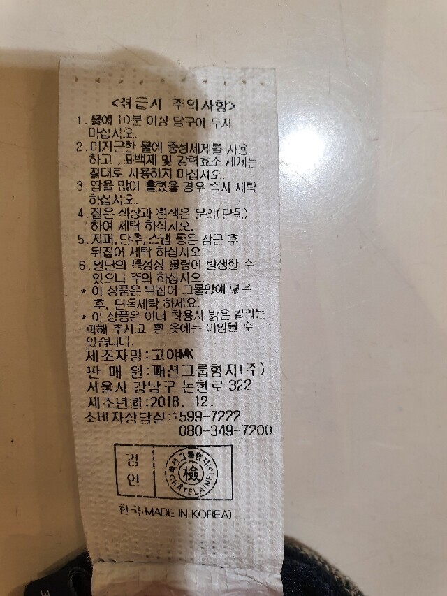 | 6. 세탁방법 및 취급시 주의사항 | 상품상세참조 |