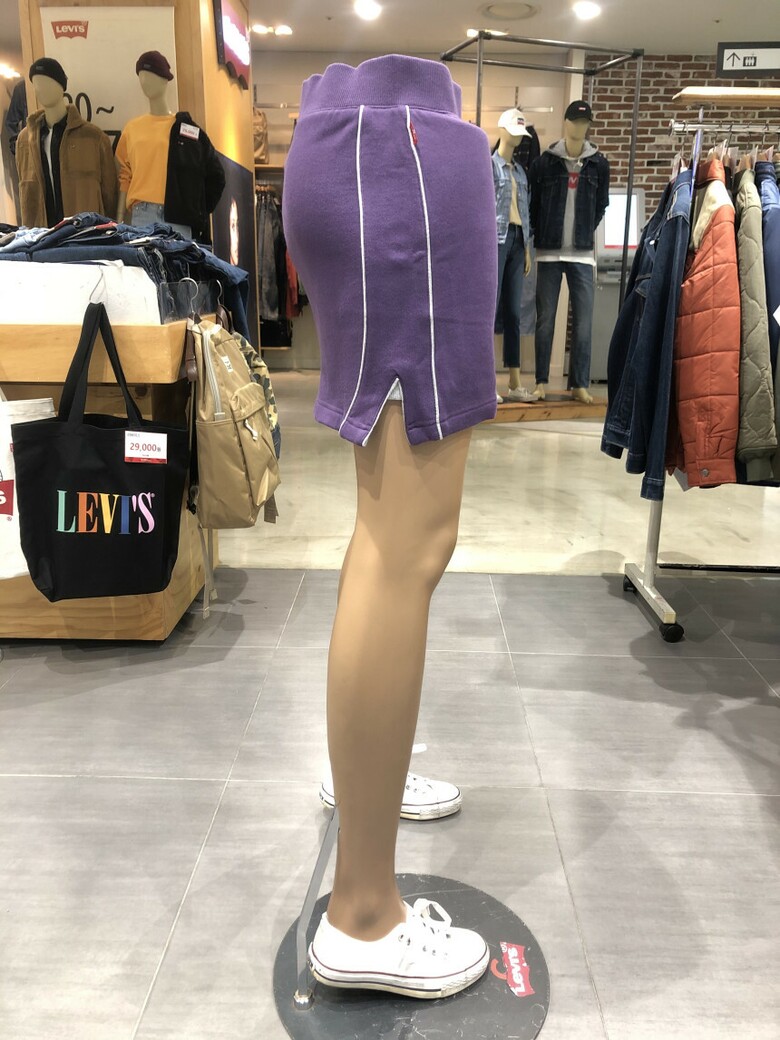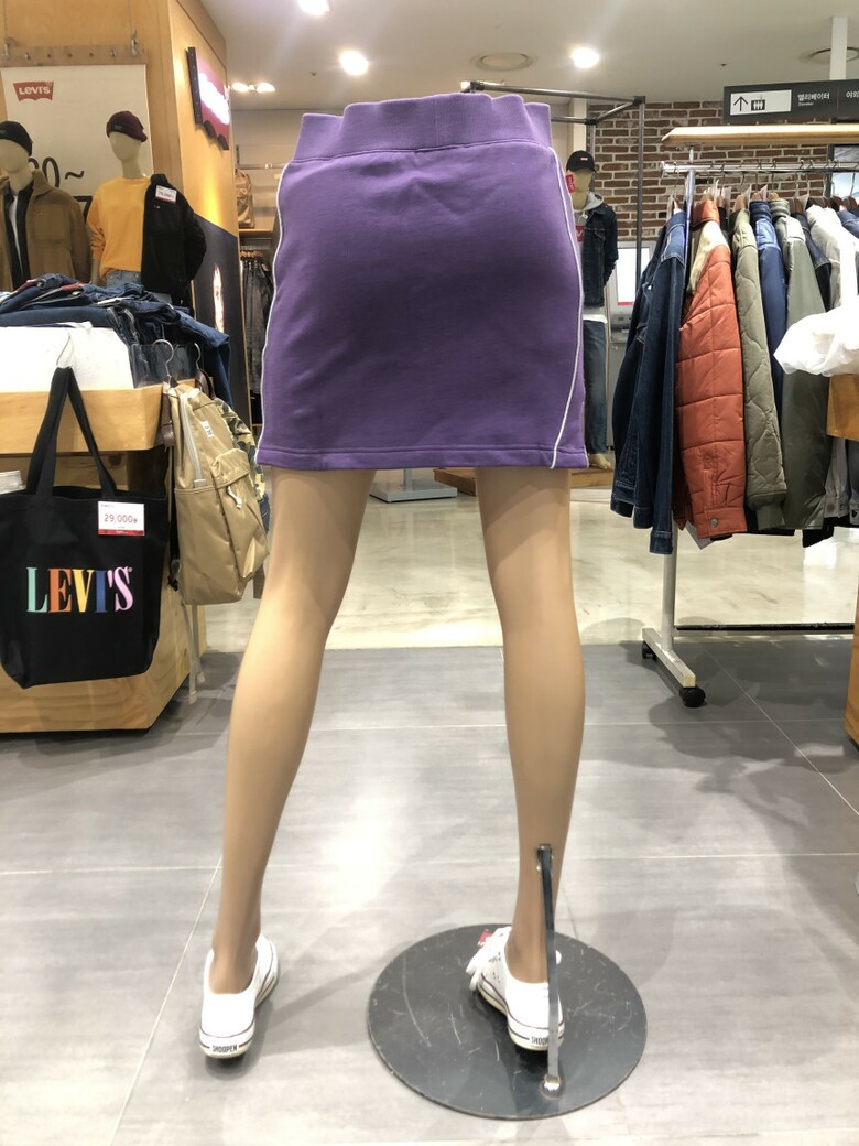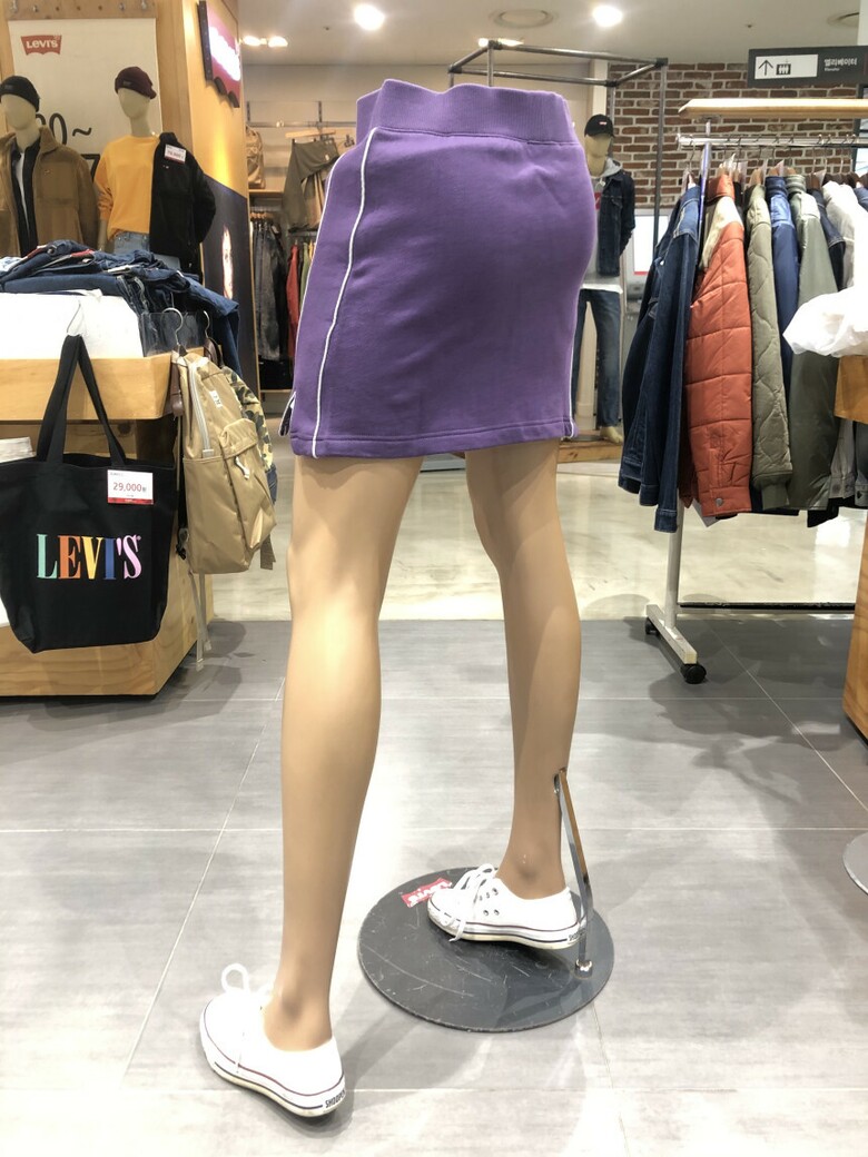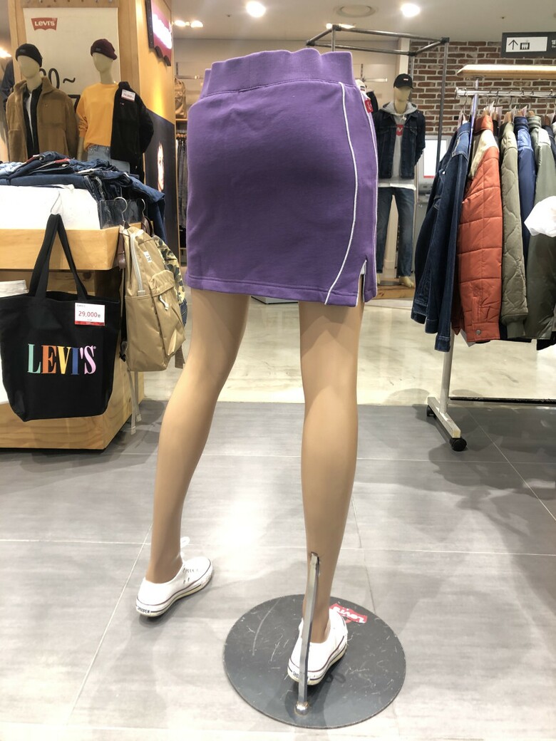 퍼플컬러에 그레이컬러의 포인트가 있는 여성 스커트입니다.