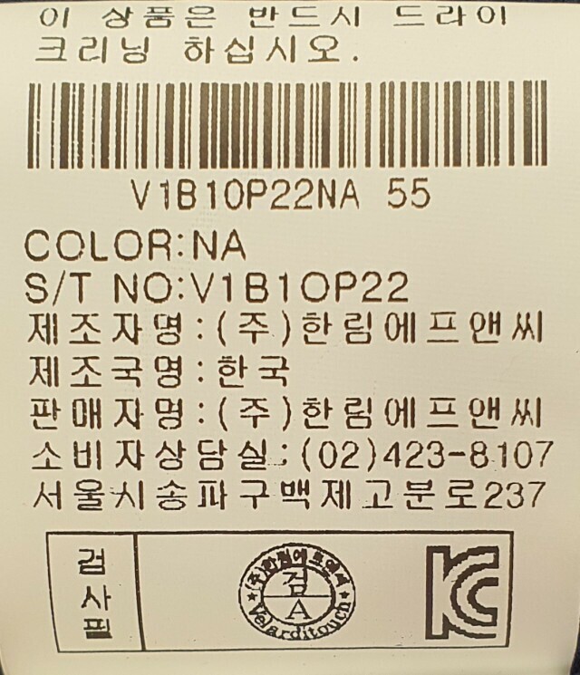 | 7. 세탁방법 및 취급시 주의사항 | 상세페이지 참조 |
