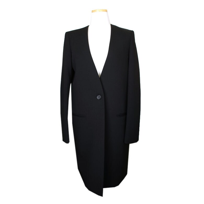 [중고명품] 띠어리 블랙 울혼방 노카라 간절기 롱자켓 55