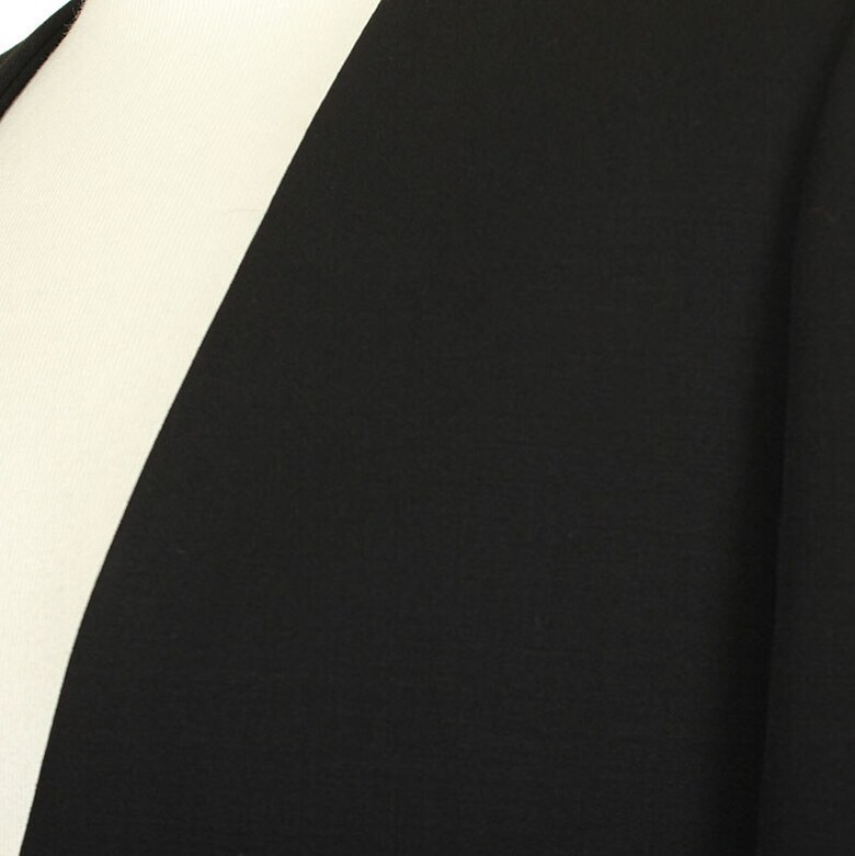 베이직한 블랙 컬러에 라펠 없이 떨어지는 라인과 입술포켓이