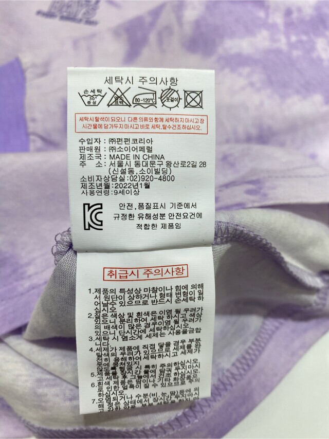 | 1. 제품 소재 (섬유의 조성 또는 혼용률을 백분율로 표시, 기능성인 경우 성적서 또는 허가서) | 면100% |
