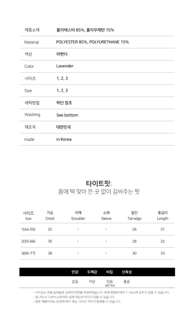| 1. 제품 소재 (섬유의 조성 또는 혼용률을 백분율로 표시, 기능성인 경우 성적서 또는 허가서) | 폴리에스터85%, 폴리우레탄 15% |
