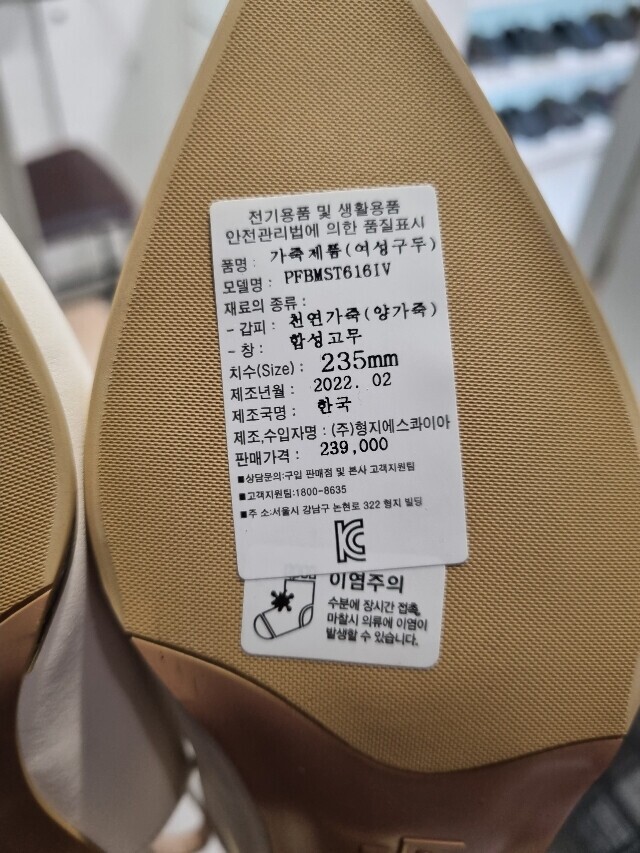 | 1. 제품 소재 (운동화인 경우에는 겉감, 안감을 구분하여 표시) | 양가죽 |