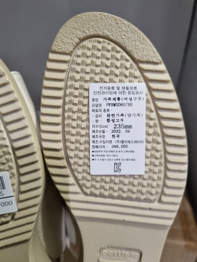 | 1. 제품 소재 (운동화인 경우에는 겉감, 안감을 구분하여 표시) | 양가죽 |